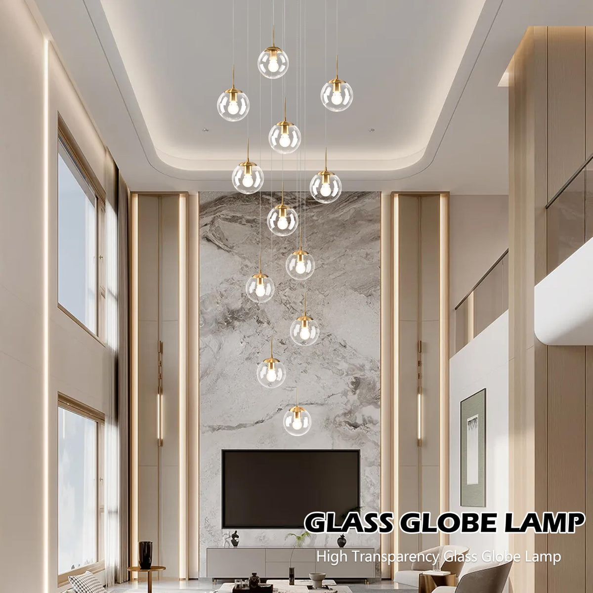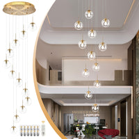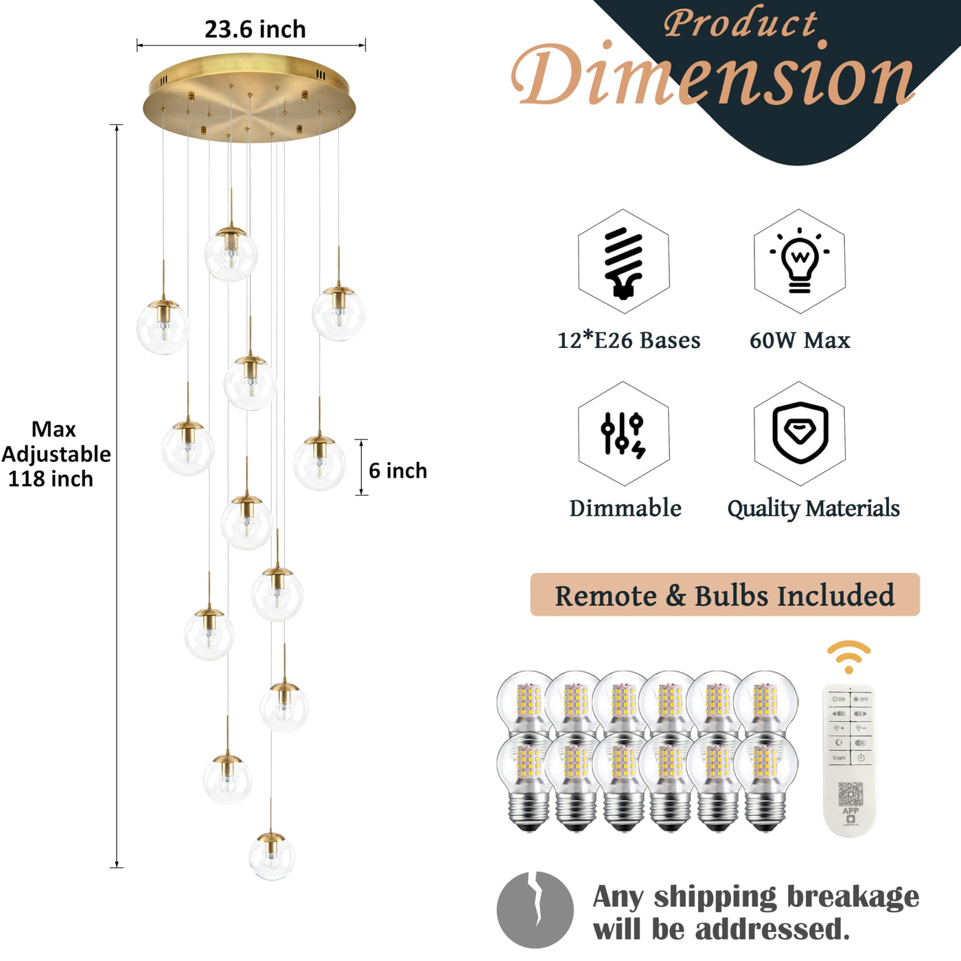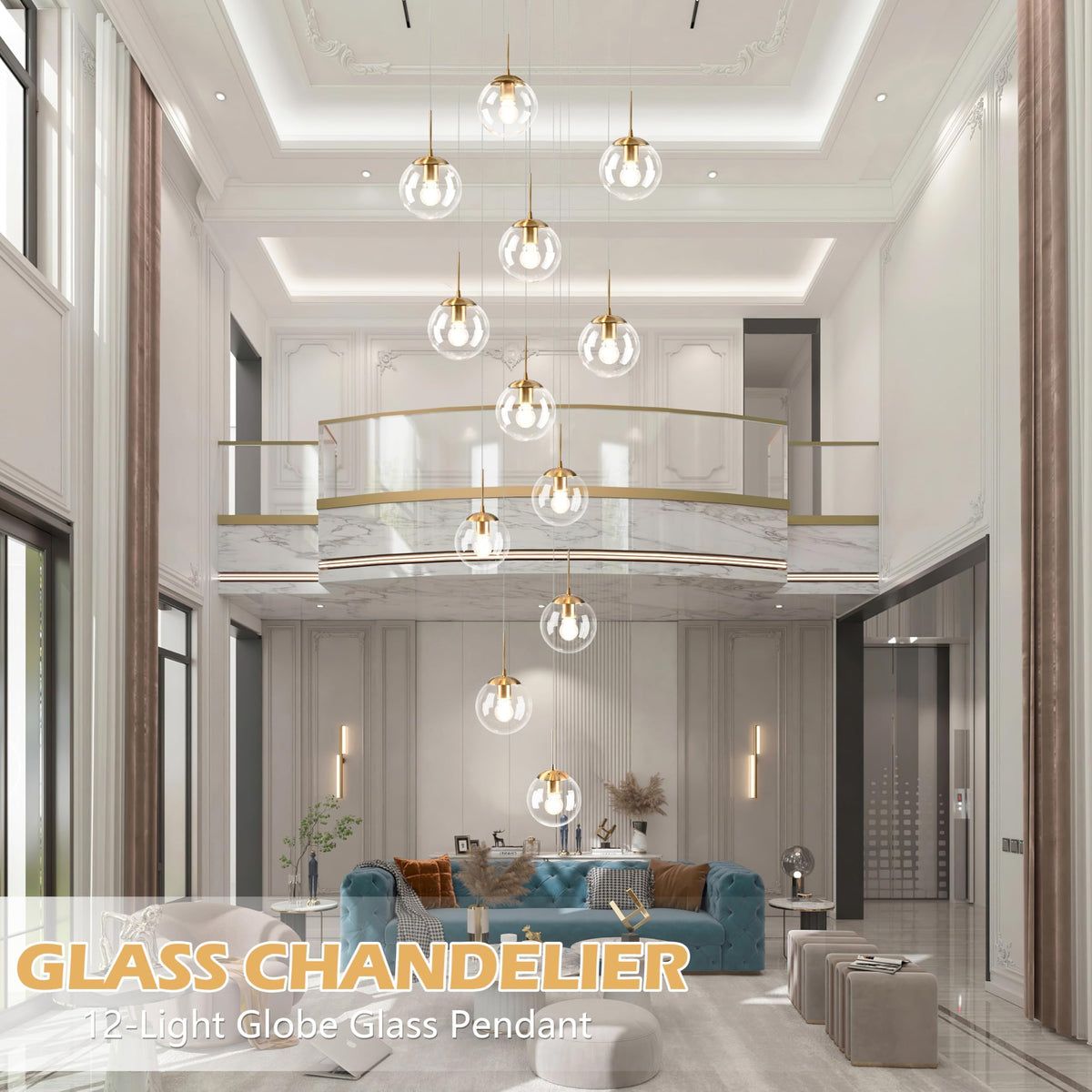 Koko&Yukina 12-Light Gold Mid Century Modern Chandelier for Living Room Staircase Chandelier for Entryway Clear Globe Glass Chandelier High Ceiling Chandeliers Foyer Entryway (Bulb & Remote Incl.)