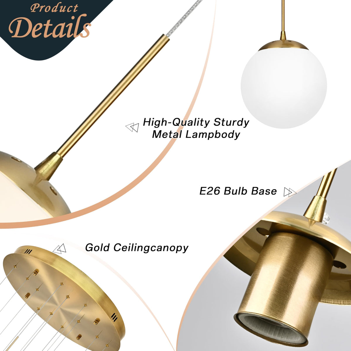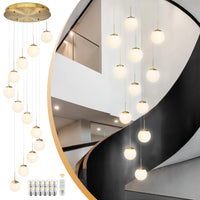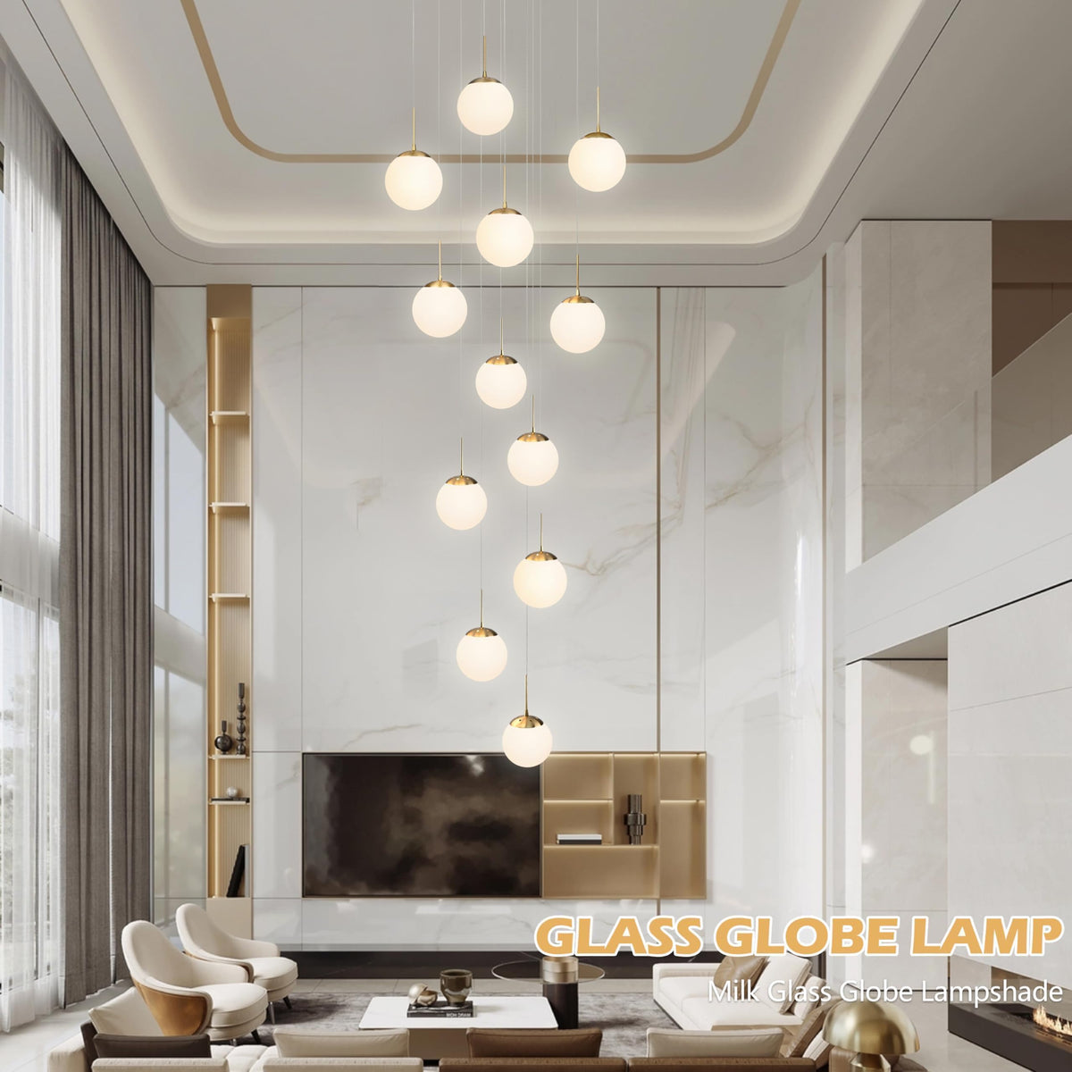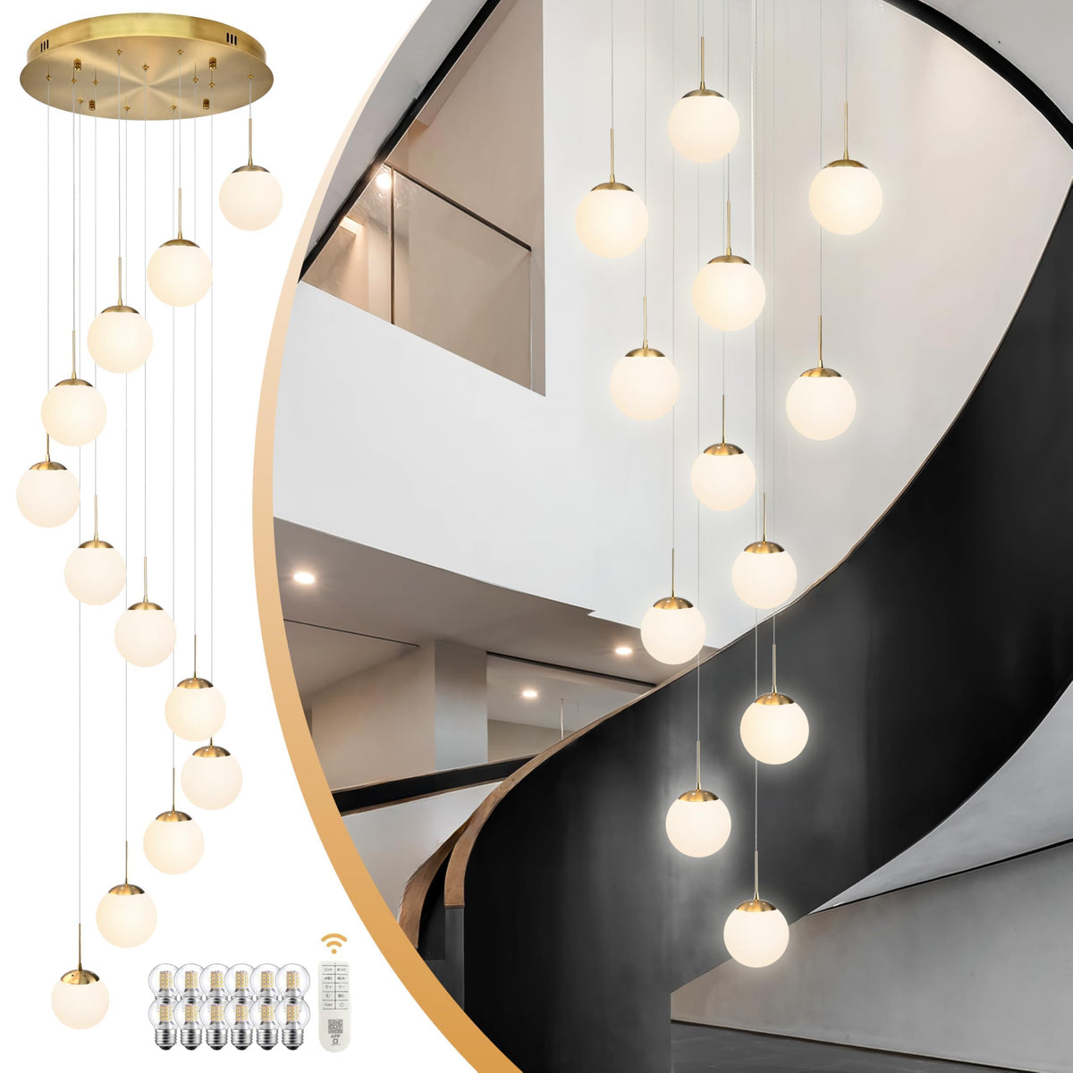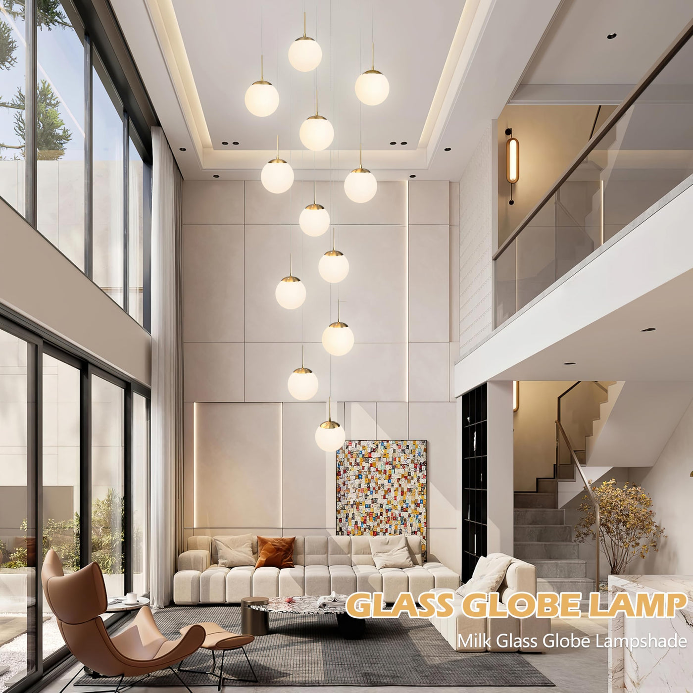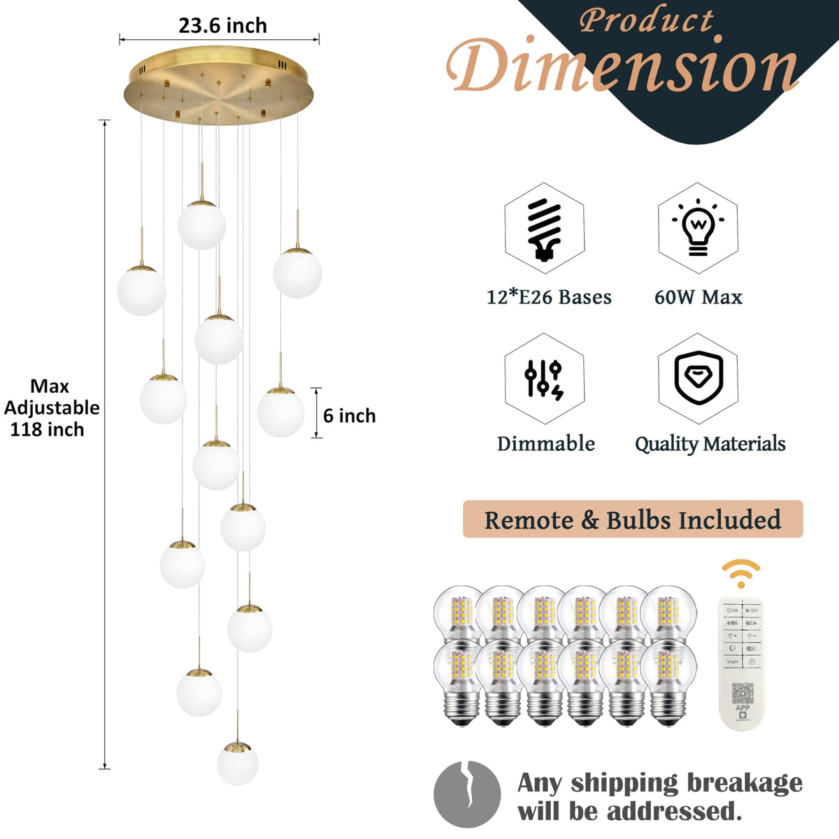 Koko&Yukina 12-Light Gold Mid Century Modern Chandelier For Living Room Staircase Chandelier For Entryway Globe Milky White Glass Pendant Light High Ceiling Chandeliers Foyer (Bulb & Remote Incl.)
