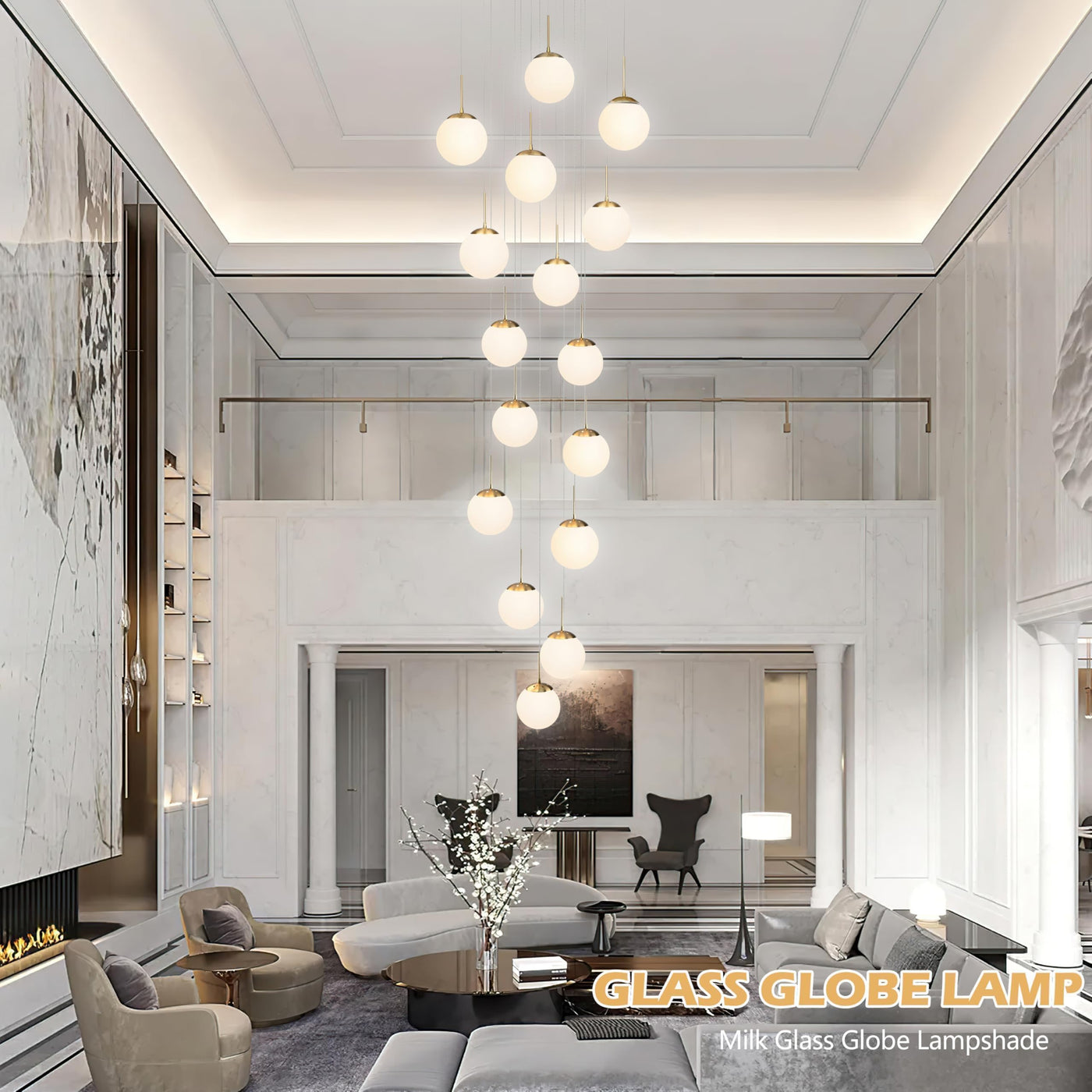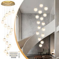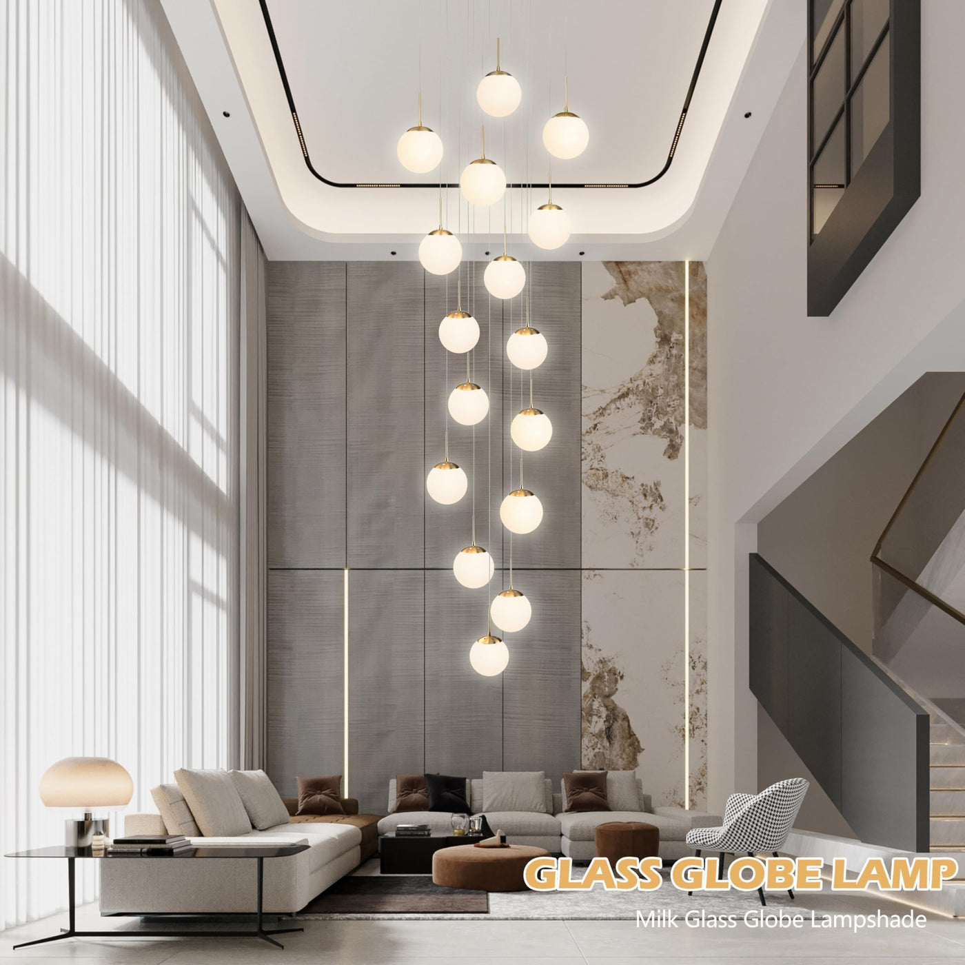 Koko&Yukina 16-Light Gold Mid Century Modern Chandelier for Living Room Staircase Chandelier for Entryway Globe Milky White Glass Pendant Light High Ceiling Chandeliers Foyer (Bulb & Remote Incl.)