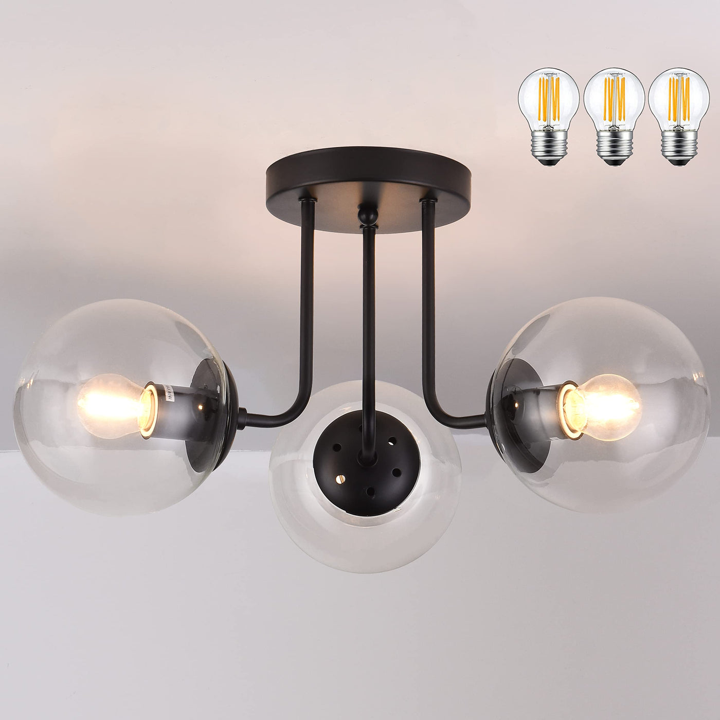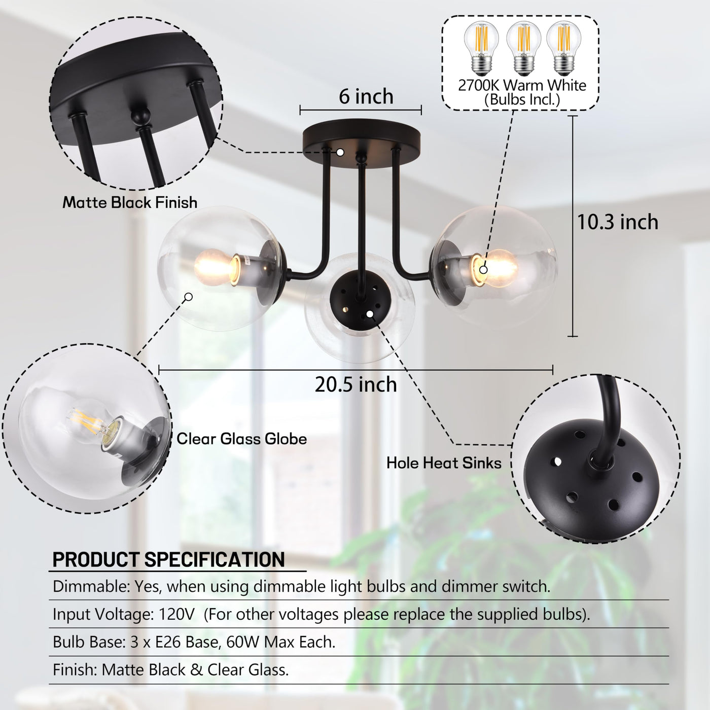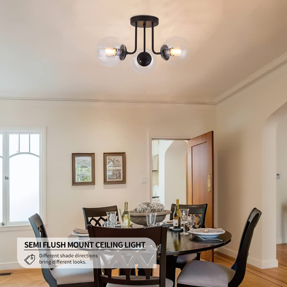 Koko&Yukina 3-Light Semi Flush Mount Ceiling Light Globe Ceiling Light Mid Century Ceiling Light With Clear Glass Globe & Matte