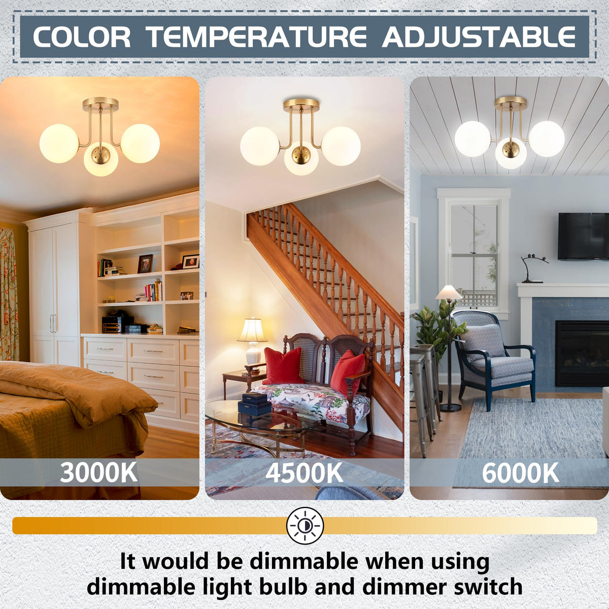 [Quick &Amp; Easy Installation] This Flush Mount Ceiling Light Is Hardwired, Installation Required. Can Be Easily Assembled, The Golden Semi Flush Mount Ceiling Light ,Completed Installation Guide And Mounting Hardware Are All Provided In The Package. (Warm Tips: Please Turn Off The Power And Read The Manual Carefully Before Installing It Into The Ceiling). Save Your Time.