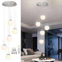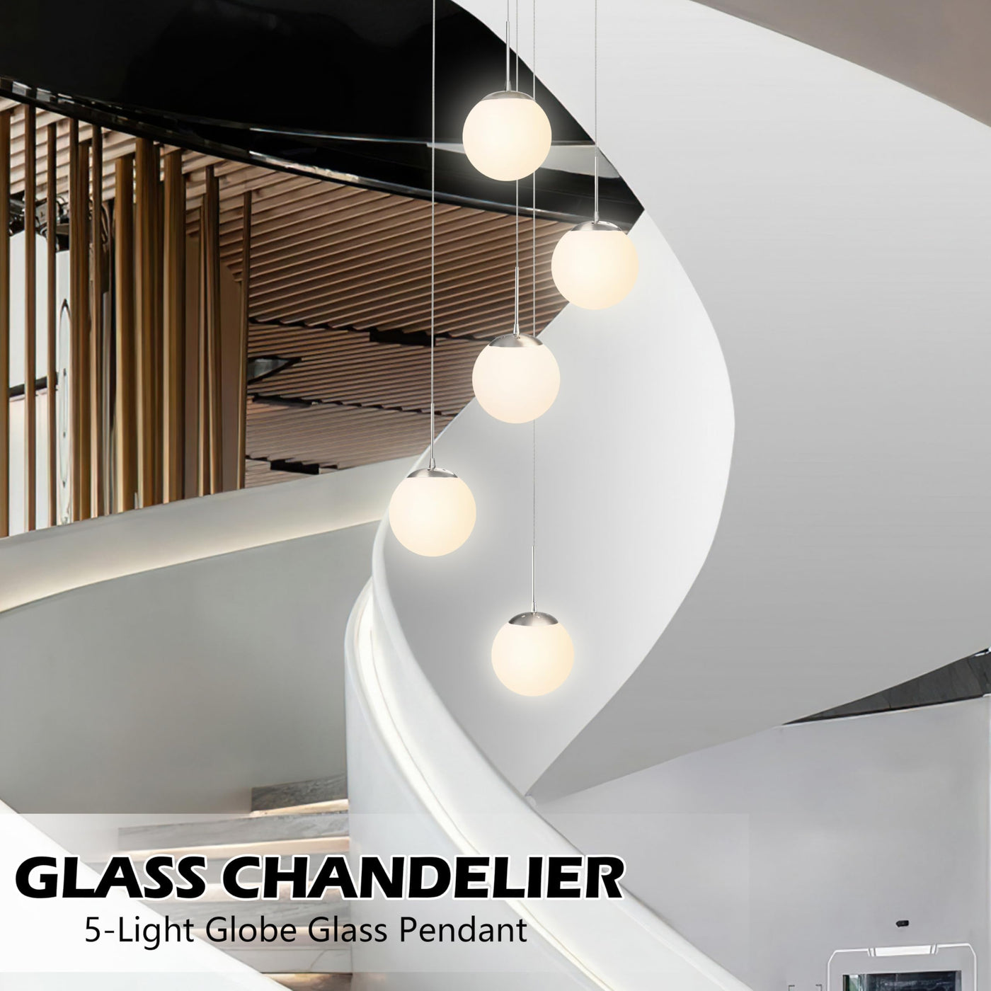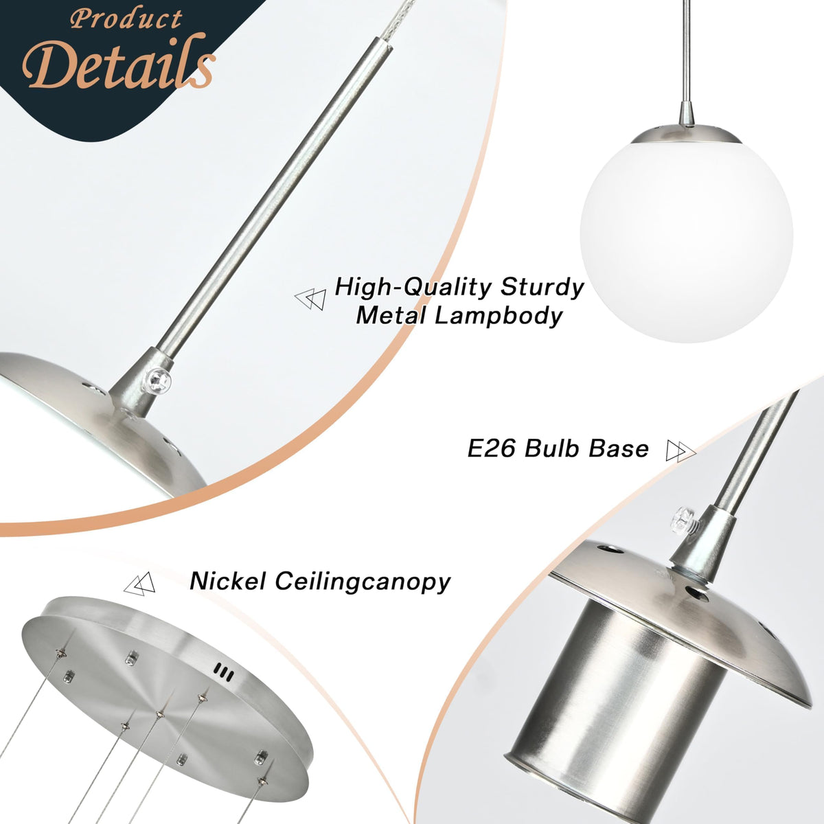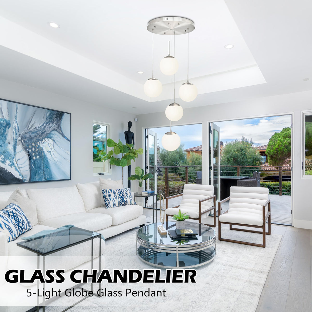 Koko&Yukina 5-Light Globe Glass Pendant Light Adjustable Length Pendant Lights Fixtures Modern Nickel Chandelier With Milky Whit