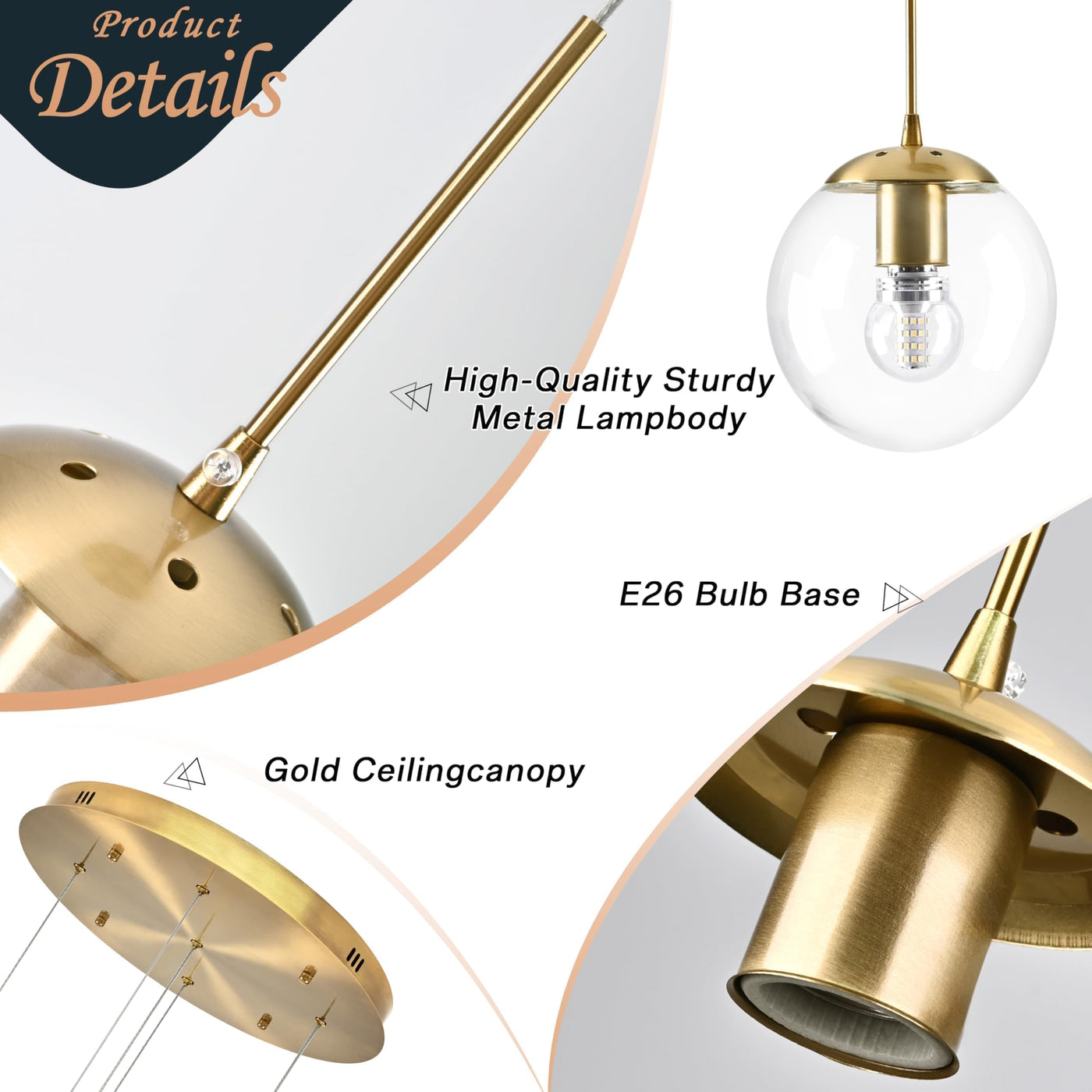 Koko&Yukina 5-Light Globe Glass Pendant Light Adjustable Length Pendant Lights Modern Gold Clear Globe Glass Chandelier High Cei