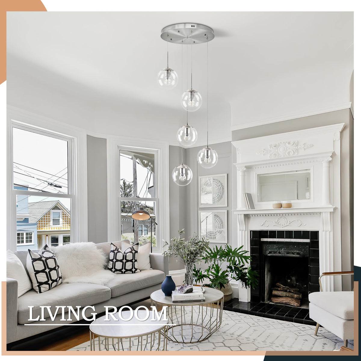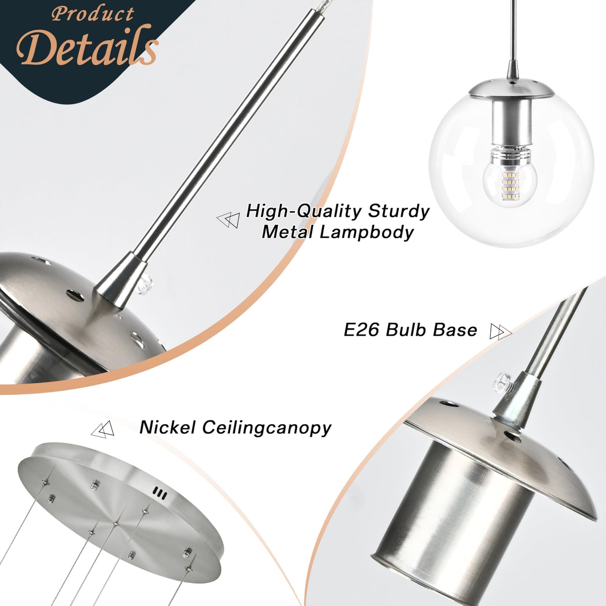 Koko&Yukina 5-Light Globe Glass Pendant Light Adjustable Length Pendant Lights Modern Nickel Clear Globe Glass Chandelier High C