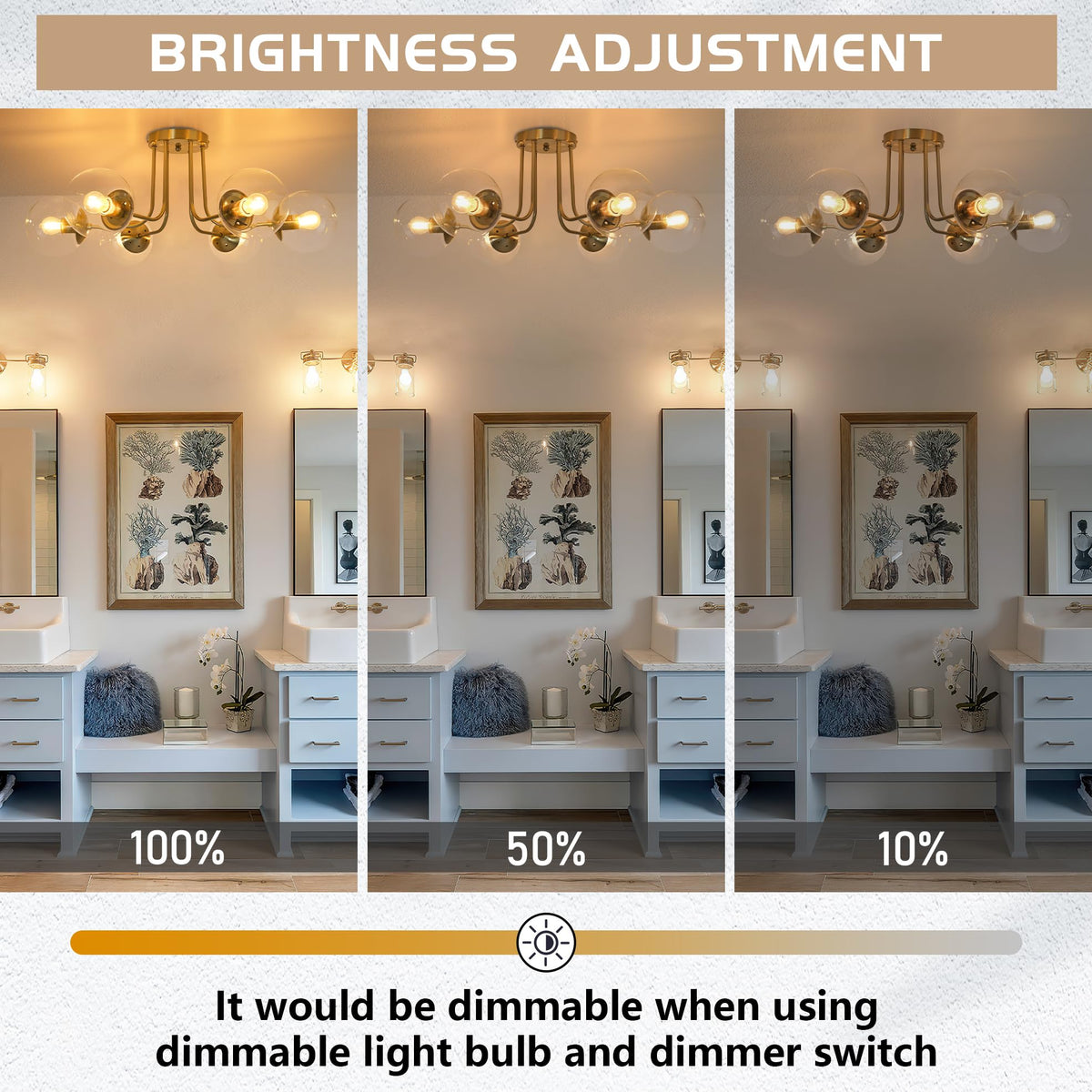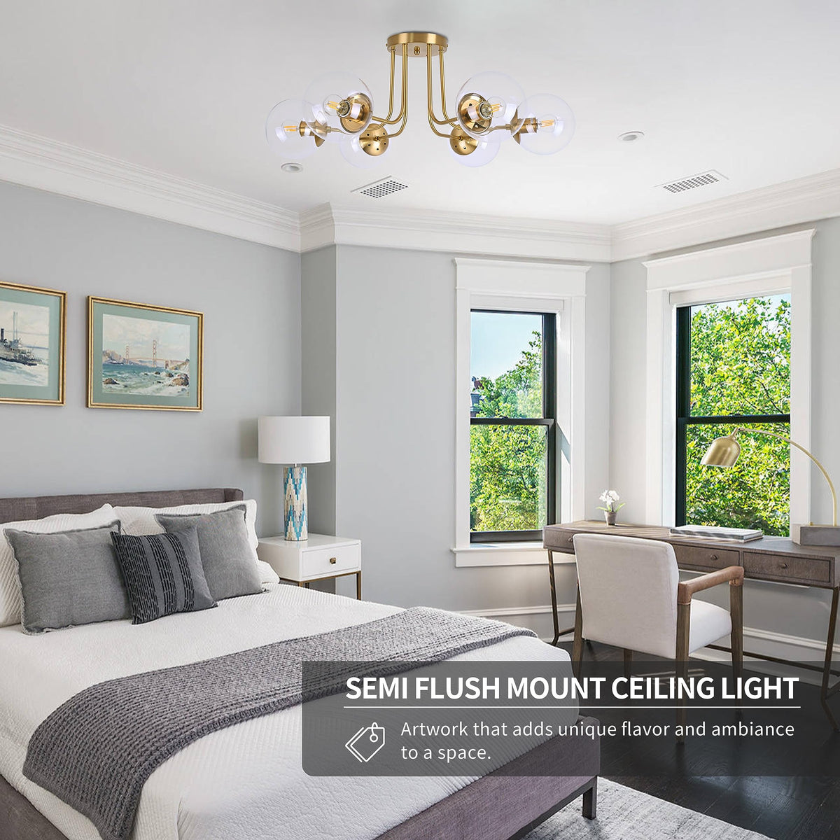 Koko&Yukina 6-Light Mid Century Ceiling Light Modern Semi Flush Mount Ceiling Light Fixture Globe Ceiling Light With Clear Glass