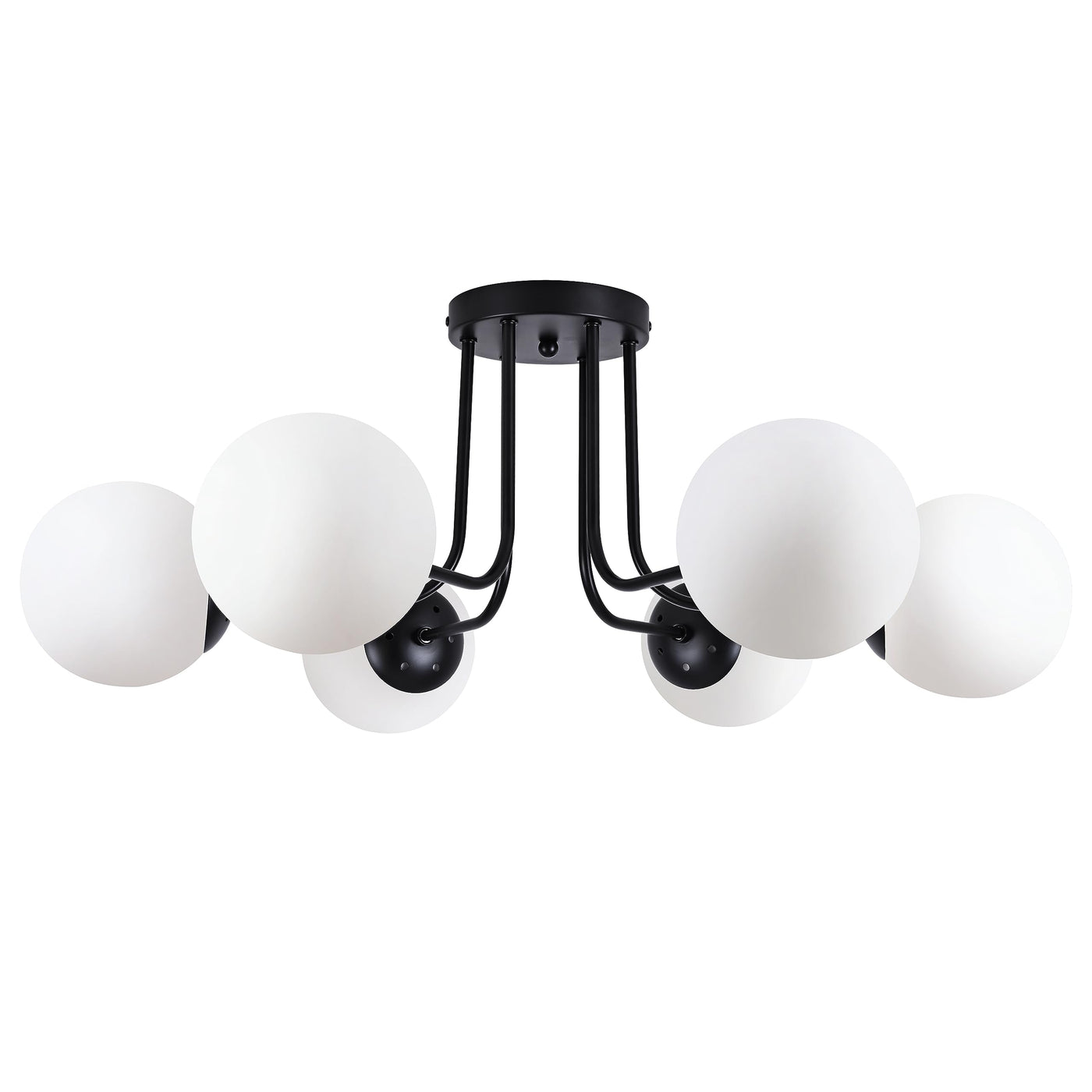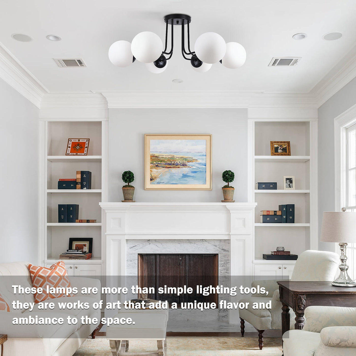 Koko&Yukina 6-Light Modern Semi Flush Mount Ceiling Light Fixture Mid Century Ceiling Light Globe Ceiling Light With Milk Glass