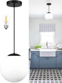Koko&Yukina Mid Century Modern Globe Pendant Light, Opal & Black, 8" Ceiling Fixture