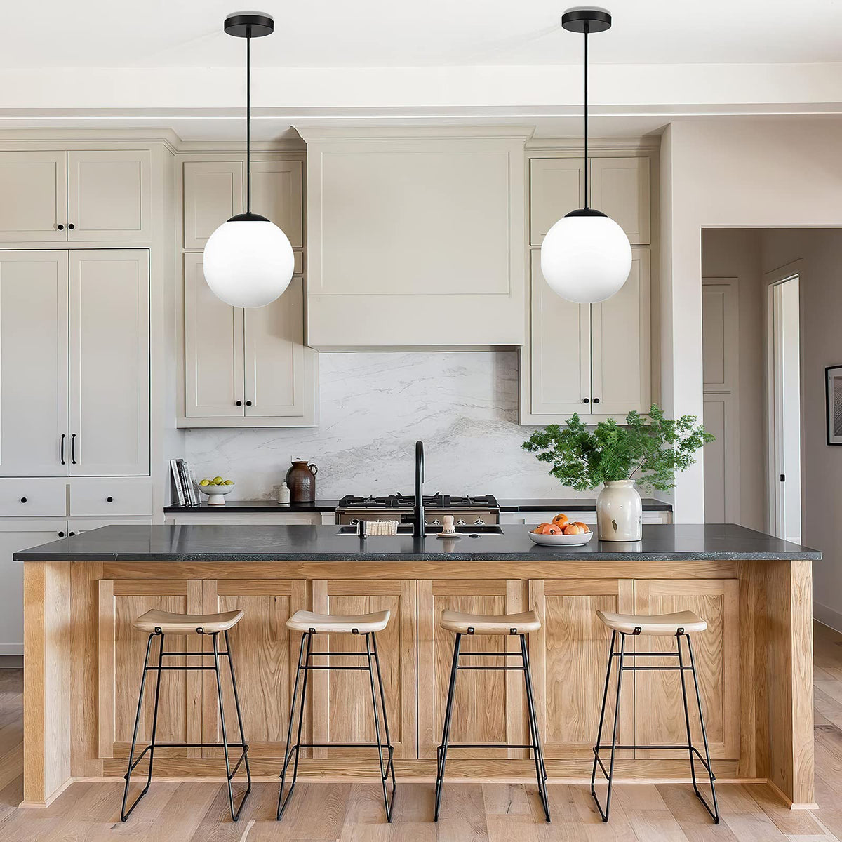 Stylish Design: This black ceiling pendant light features an elegant milk white glass globe with a diameter of 8 inches, complemented by a 6-inch ceiling tray. Its sleek design adds a touch of sophistication and warmth to any room.