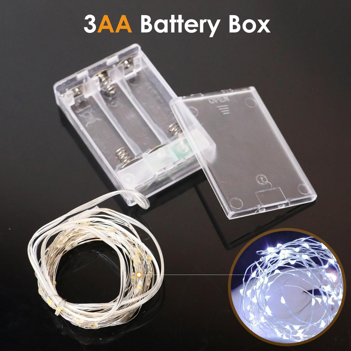 Q: What is the length and number of LEDs in each string of lights?A: Each string of kolpop fairy lights is 5 meters (16 feet) long and contains 50 small LED beads. This length and number of lights make them ideal for a variety of decorative uses, providing a beautiful twinkling effect.