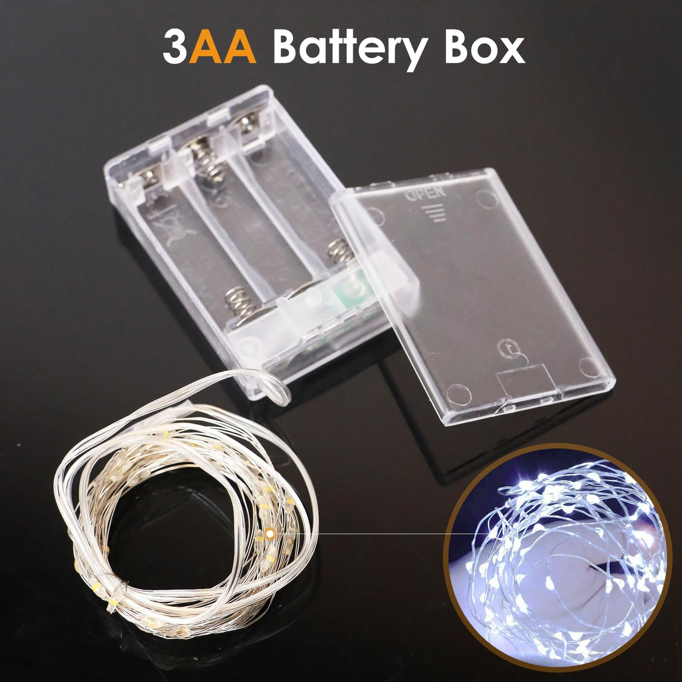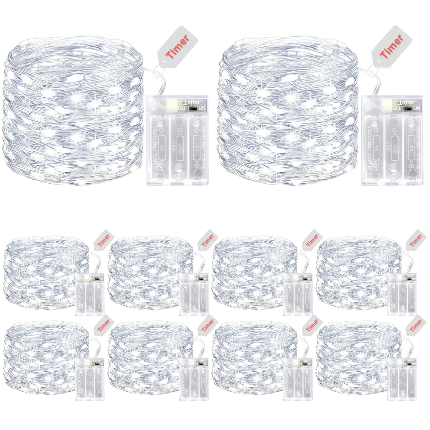 Kolpop 10 Pack Fairy Lights Battery Operated With Timer, 50 Led Mini String Light Battery Powered, Cool White Tiny Christmas Lights For Indoor Wedding Bedroom Party Decorations