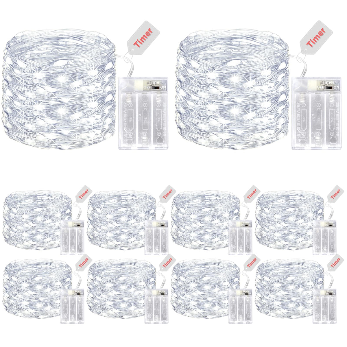 kolpop Fairy Lights Battery Operated, [10 Pack/16FT/50 LED] Twinkle Lights with Timer, Cool White Mini String Light for Indoor Christmas Wedding Bedroom Party Decorations