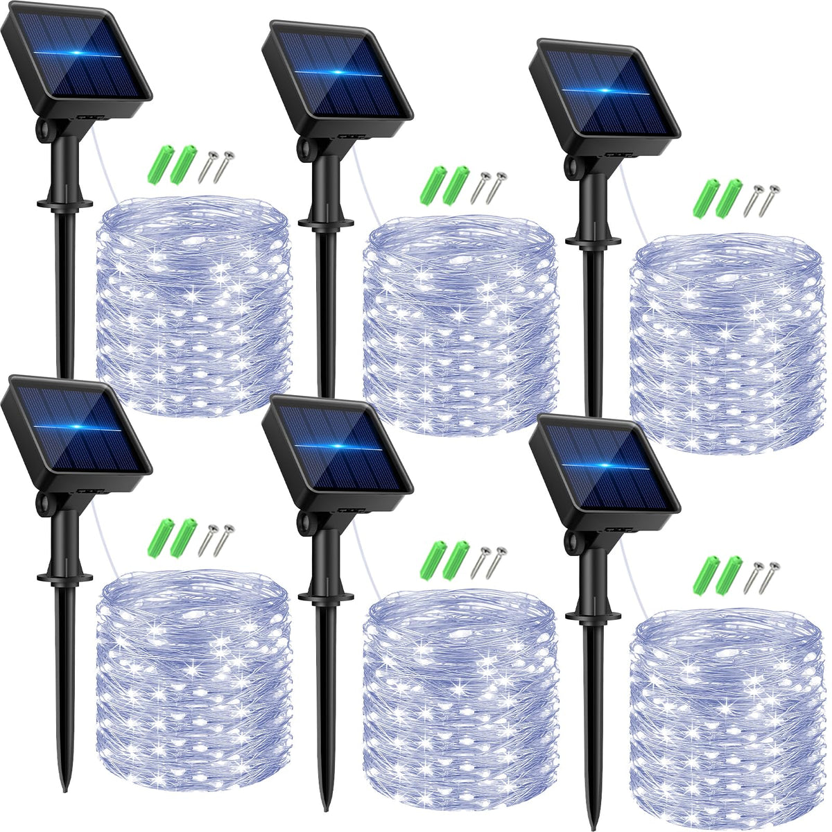Kolpop 6 Pack Solar Fairy Lights Outdoor, 192Ft 480Led Solar Powered Twinkle Light Waterproof, 8 Mode Copper Wire Solar Tree Lig