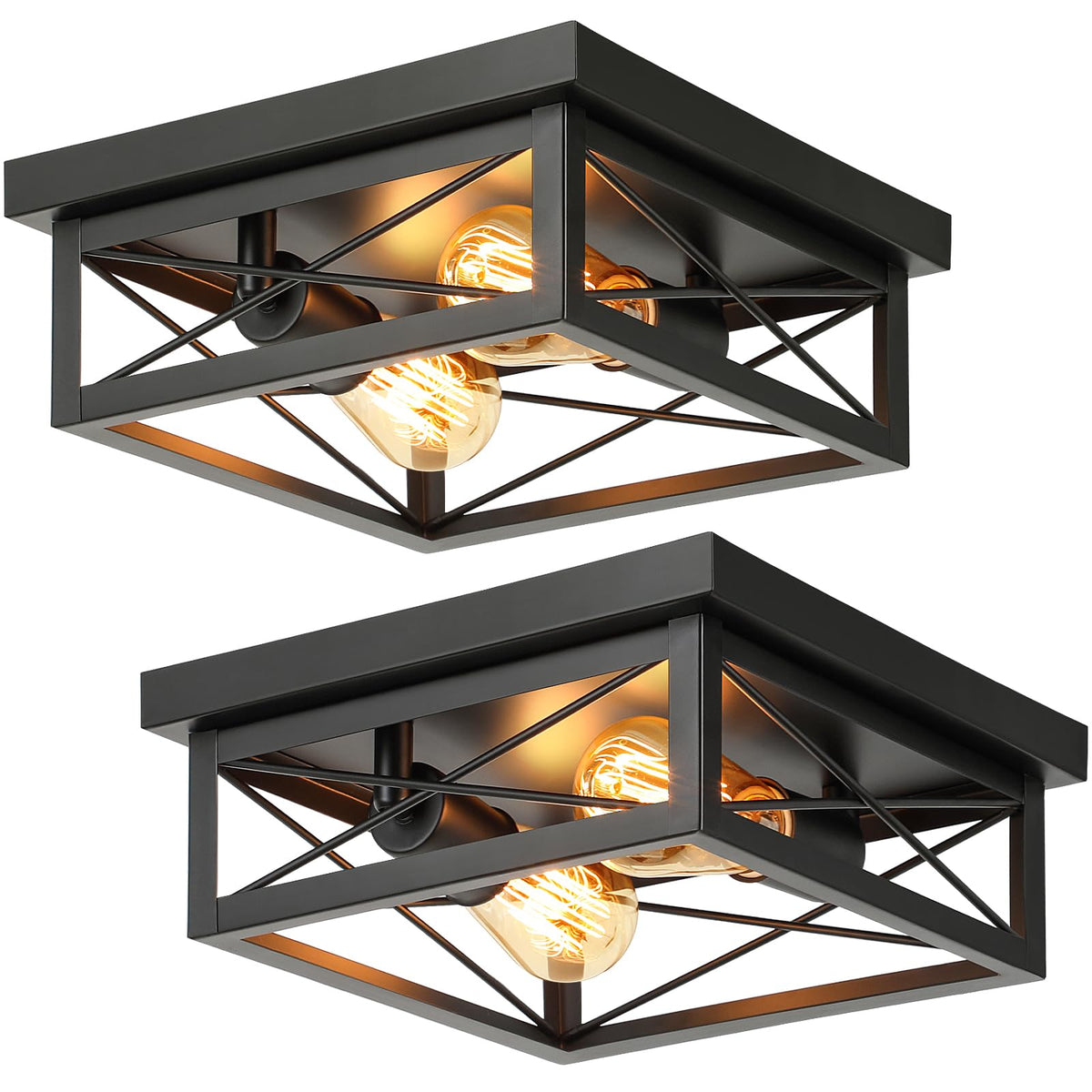 Kondras 2-Light Industrial Square Flush Mount Ceiling Light, Farmhouse Ceiling Light Fixture For Kitchen, Modern Black Close To