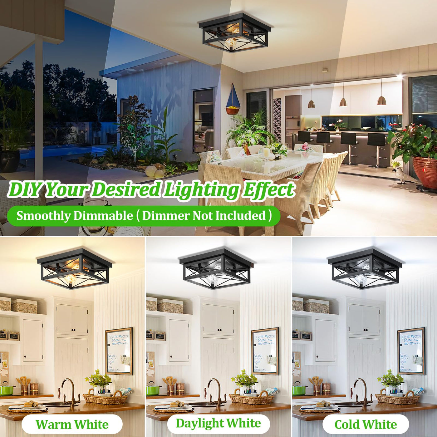 Q: What materials are used in the construction of this ceiling light?A: This ceiling light fixture is crafted with a durable matte black finish that resists rust and dust. The unique crossing grids enhance stability and safety, ensuring a long-lasting and reliable product.