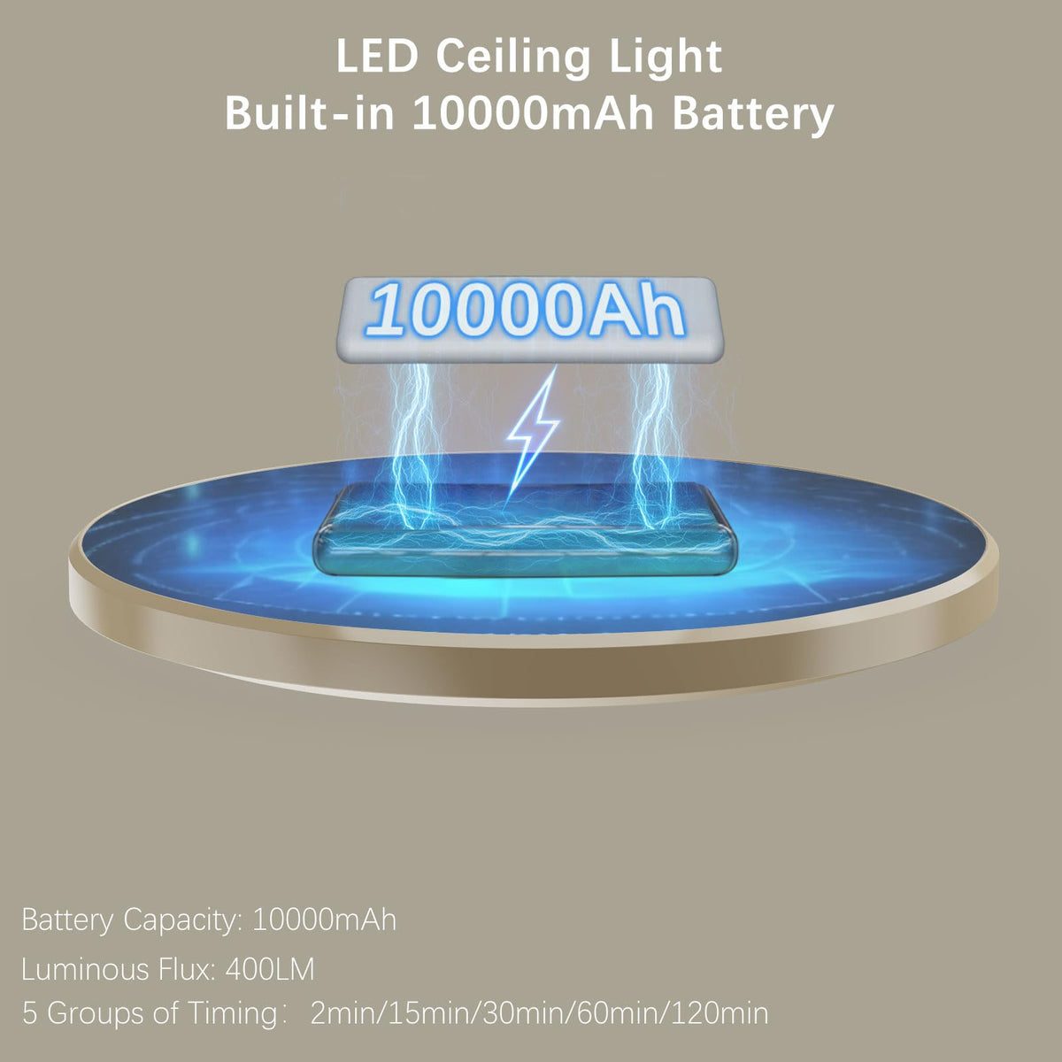 Q: How long can the ceiling light operate on battery power?A: This ceiling light is equipped with a built-in rechargeable battery that can last for up to fifteen hours at the highest brightness in constant light mode and up to sixty days in induction mode.