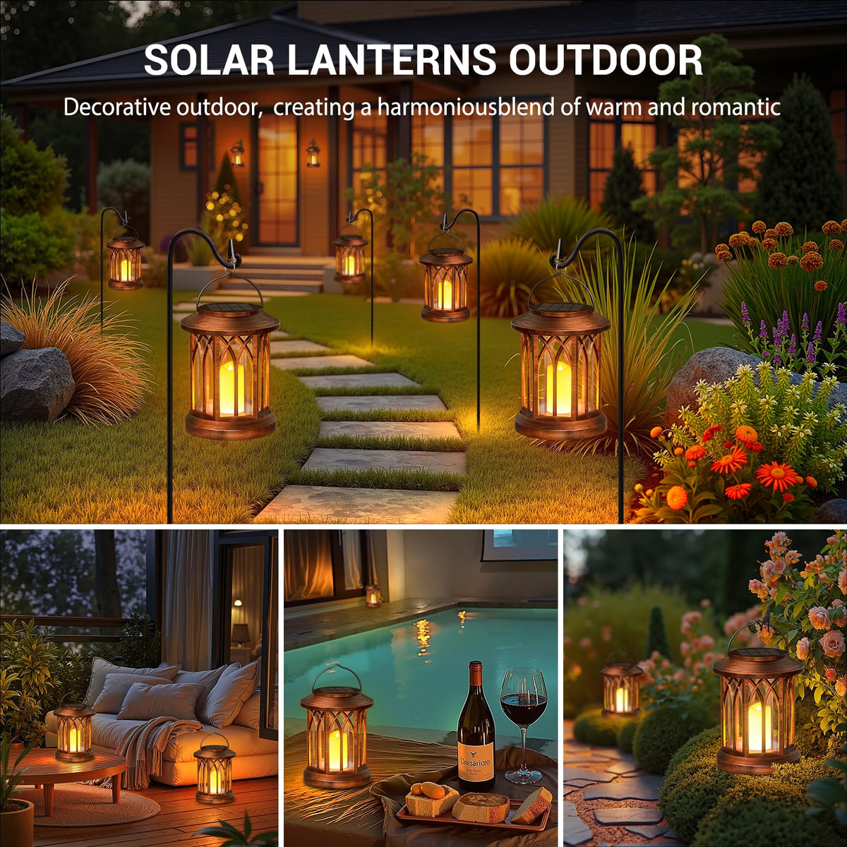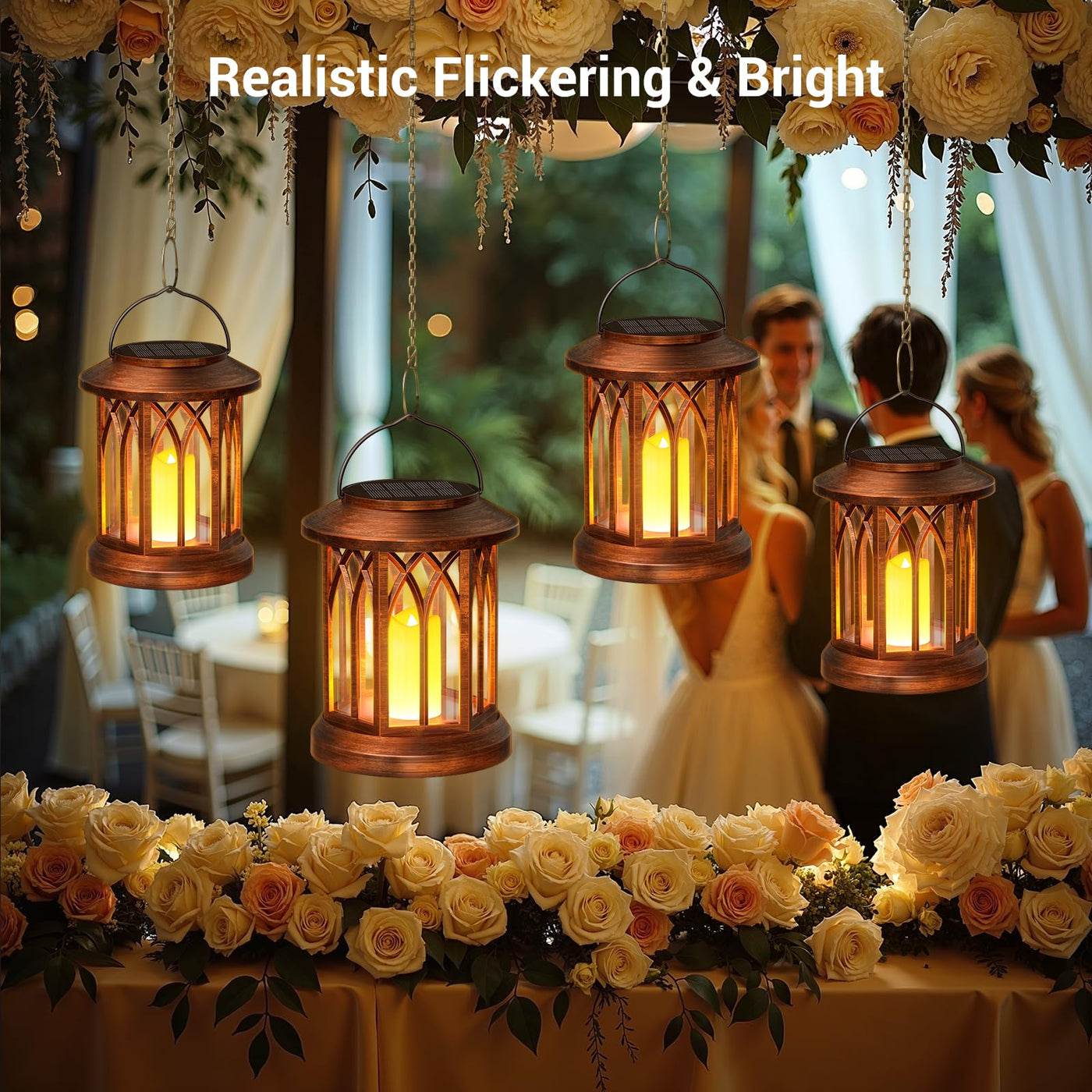 Kooper 4 Pack Solar Lantern Outdoor Lights, Hanging Solar Lanterns Outdoor Decorative, Lanterns Led Flickering Flameless Candle