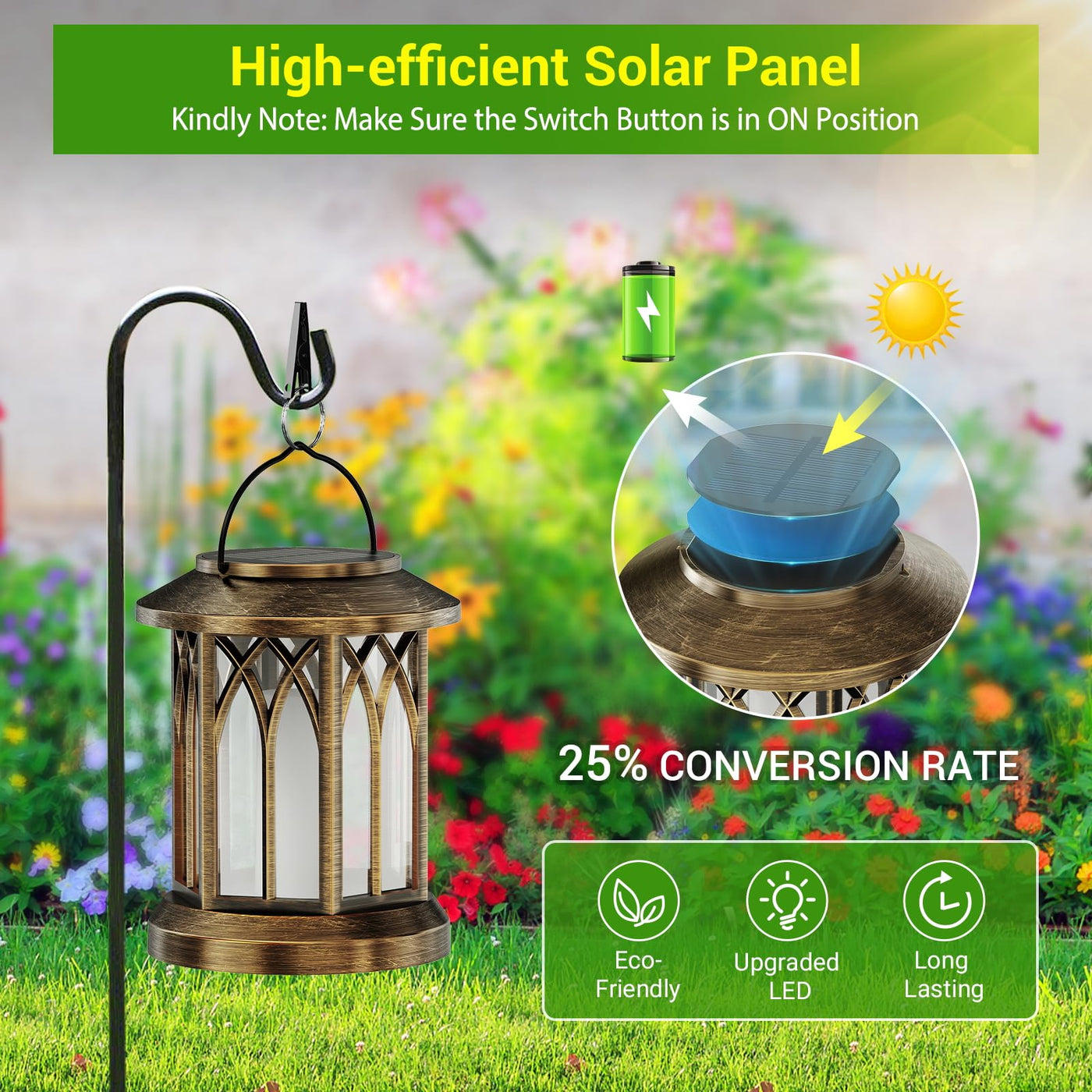 Kooper Hanging Solar Lanterns Lights Outdoor Waterproof, Flickering Flames Solar Lantern Lights Outdoor, 2 Pack Solar Hanging Lights Outdoor, Auto On/Off Solar Lantern For Yard Garden Decor, Bronze