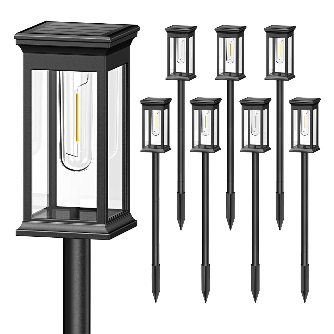 Q: What is the working time of these solar lights after charging?A: These solar pathway lights can last for 8-12 hours of lighting after a full charge of 4-6 hours in sunlight, making them efficient for overnight use.