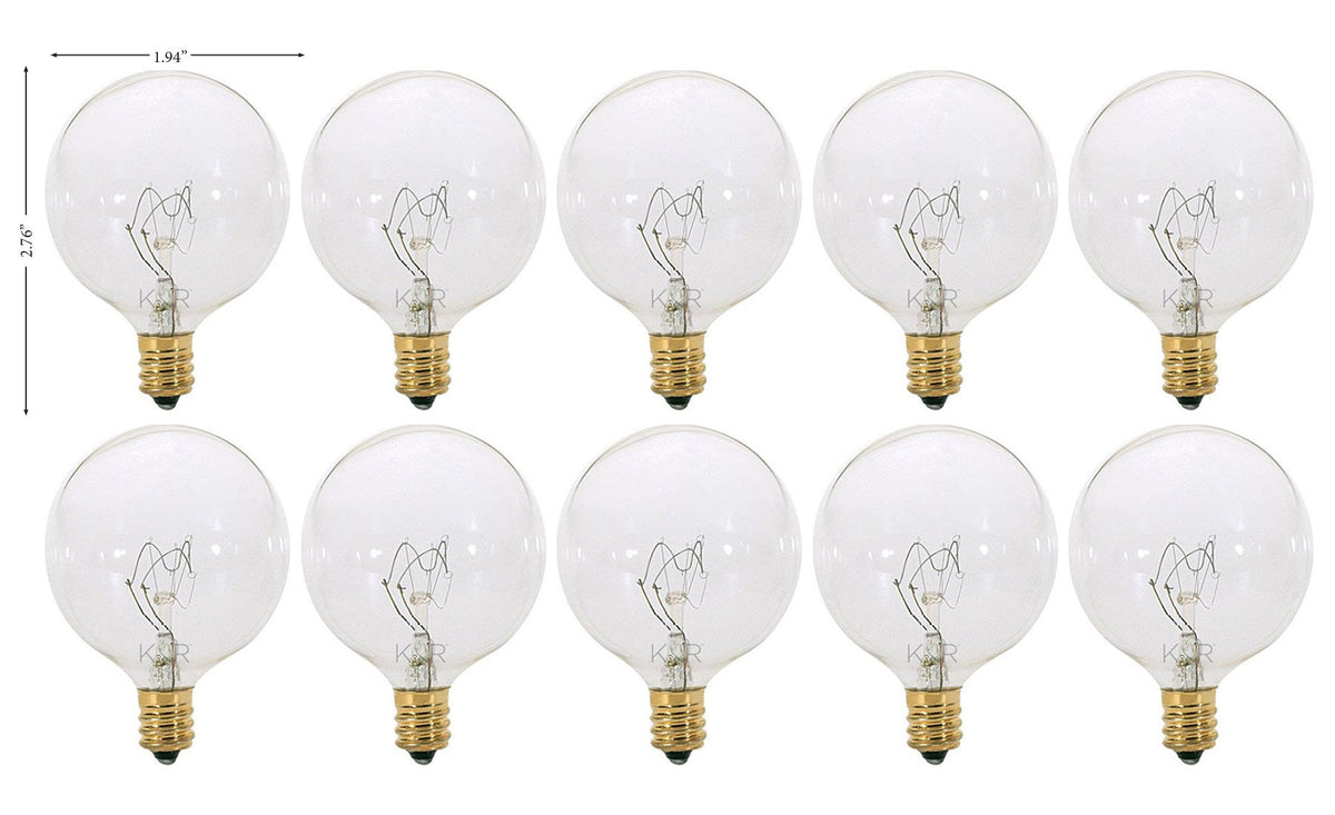Kor (Pack Of 10) G16.5 Clear Finshdecorative (E12) Candelabra Base Globe Shape Incandescent 120V G16 1/2 Light Bulbs (25)