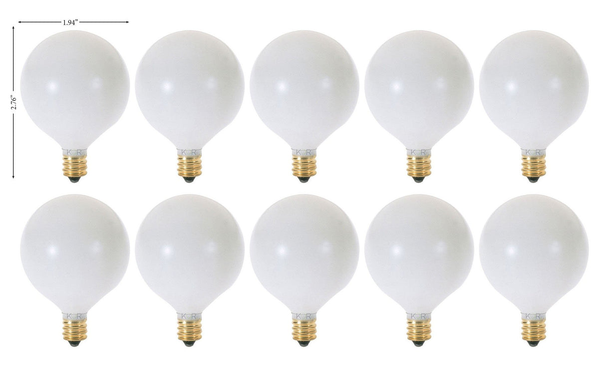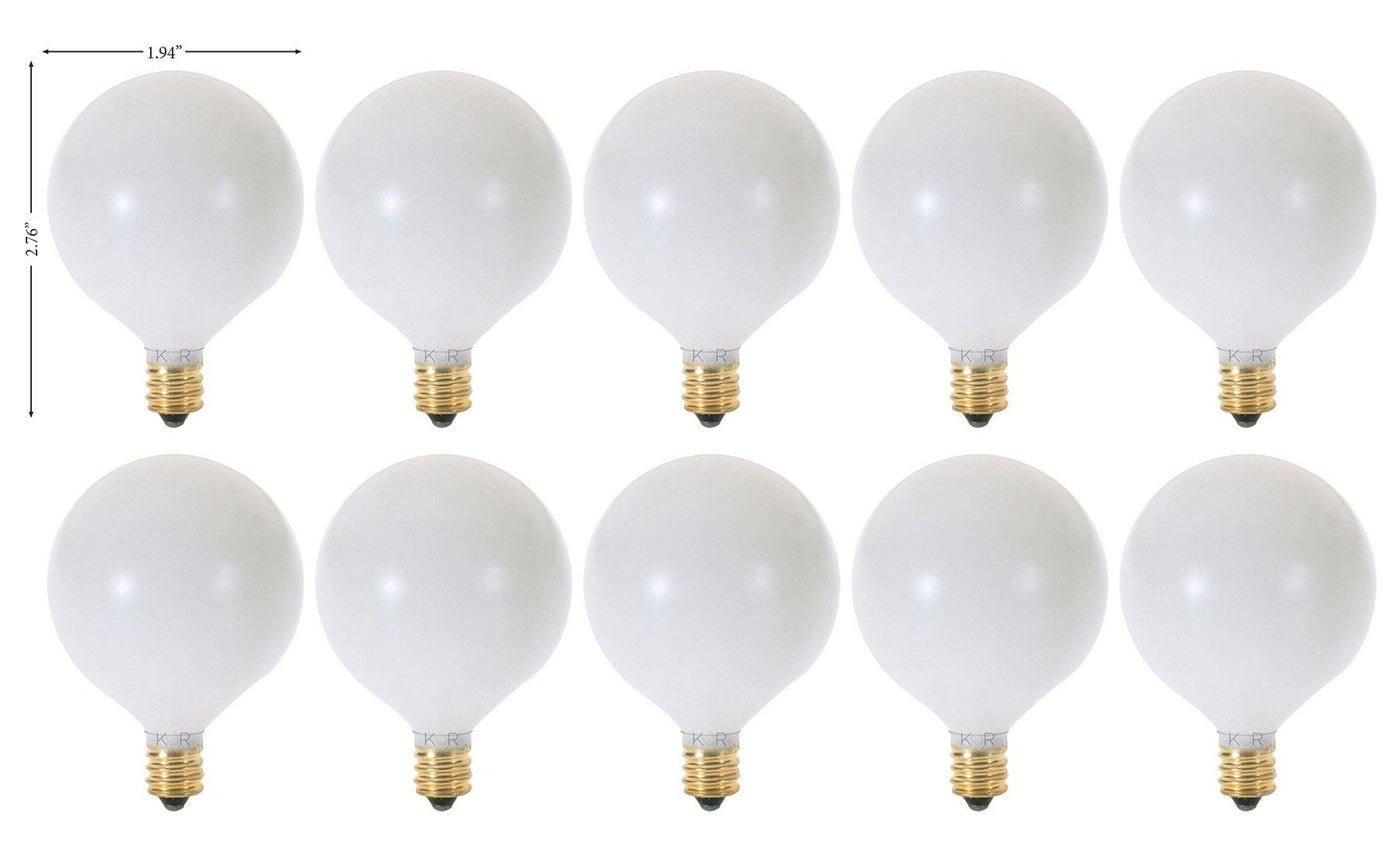 Kor (Pack Of 10) G16.5 White Finsh Decorative (E12) Candelabra Base Globe Shape Incandescent 120V G16 1/2 Light Bulbs (25)