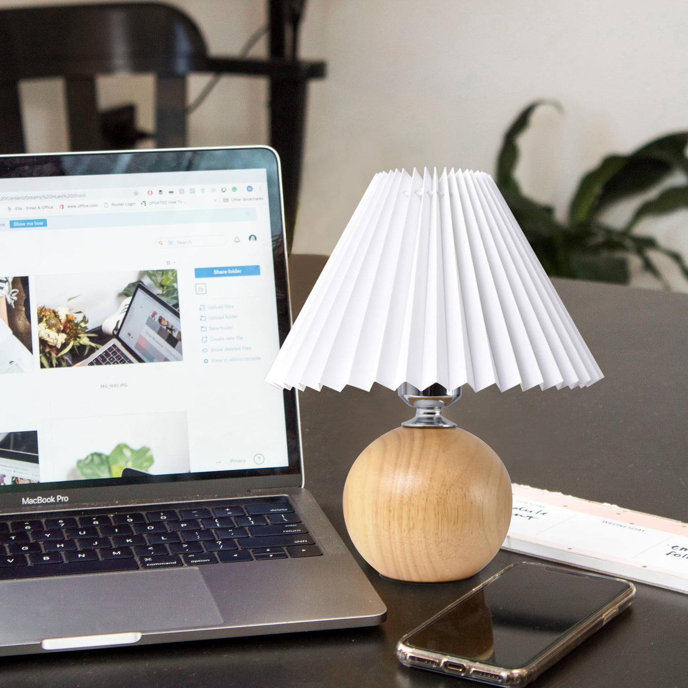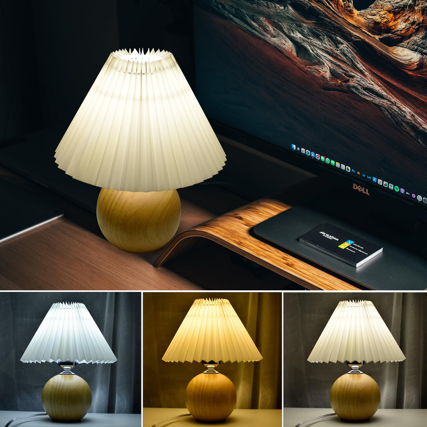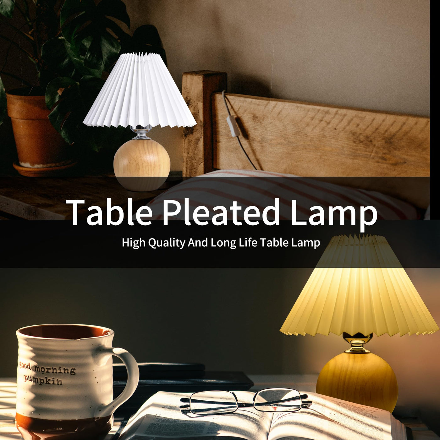 Korean Pleated Table Lamp Ins Diy Ceramic Table Lamps For Living Room Home Deco Cute Lamp With Tricolor Led Bulb Beside Lamp (Wood And White)