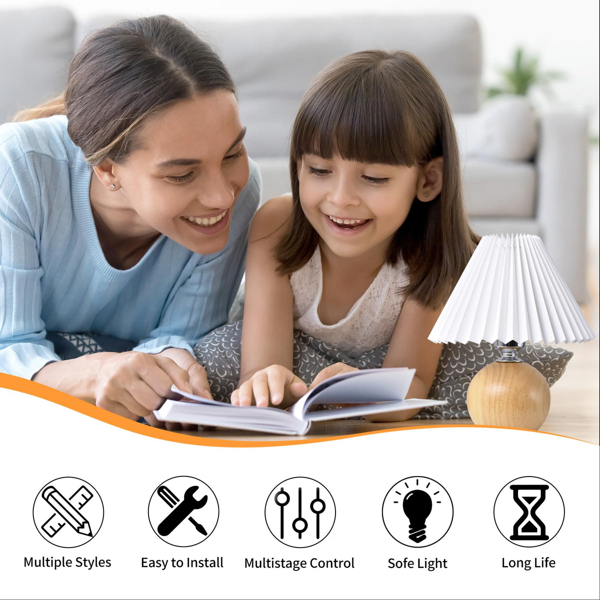 Q: Is this lamp safe for the eyes?A: Yes, the Korean Pleated Table Lamp provides bright, soft light that is harmless to the eyes, with no ultraviolet or infrared radiation, ensuring a comfortable lighting experience.