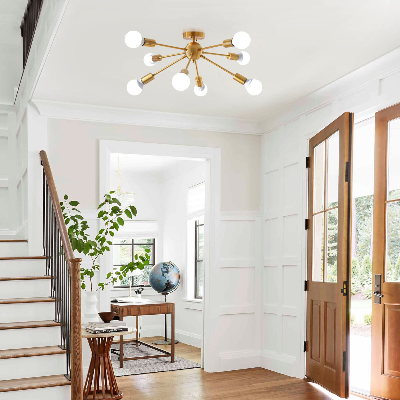 Kostomo 8 Light Sputnik Ceiling Light Brushed Gold Chandelier Brass Rustic Semi Flush Mount Ceiling Light Modern Kitchen Light Fixtures Chandeliers For Dining Room Bedroom Kitchen Ceiling Light