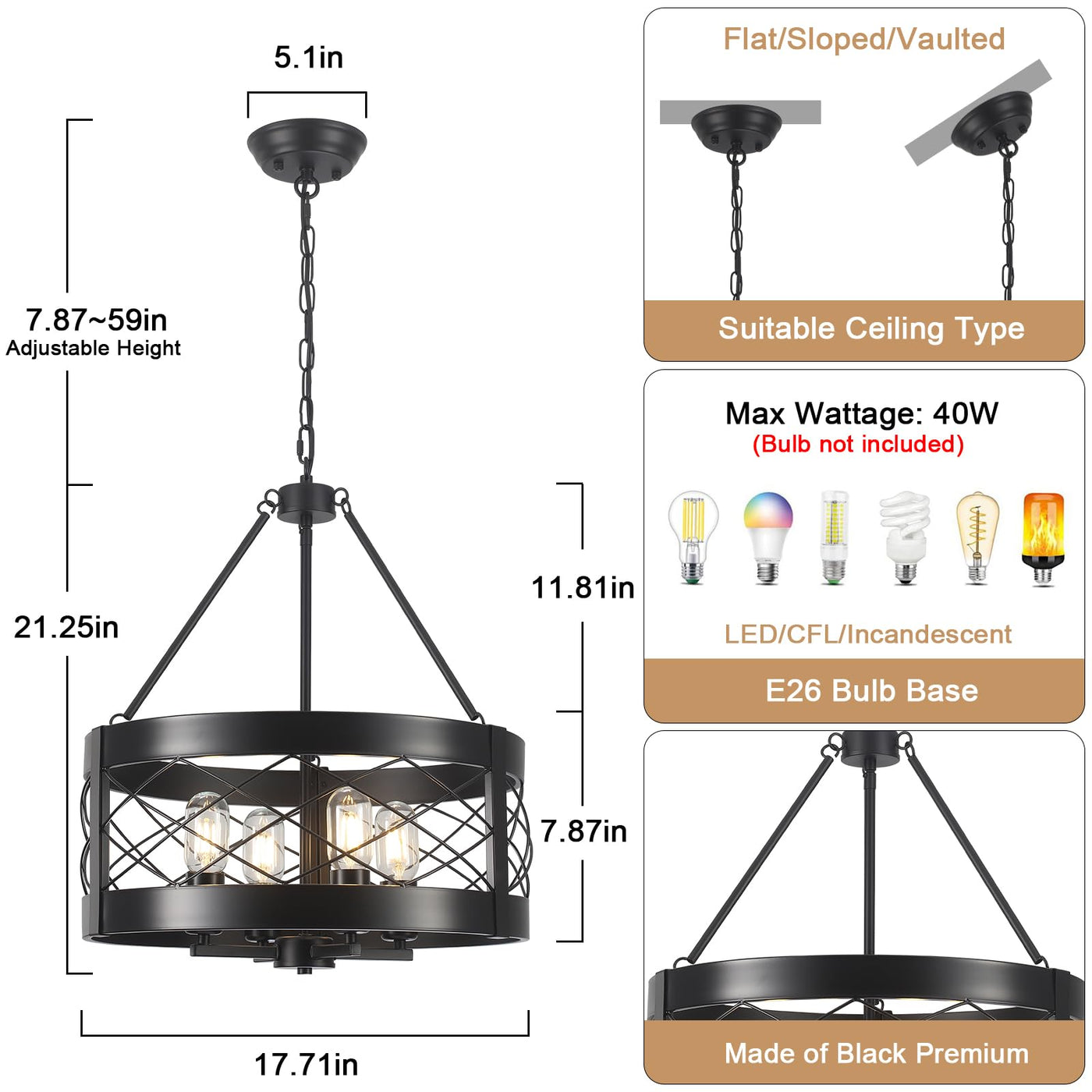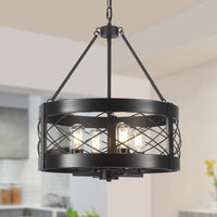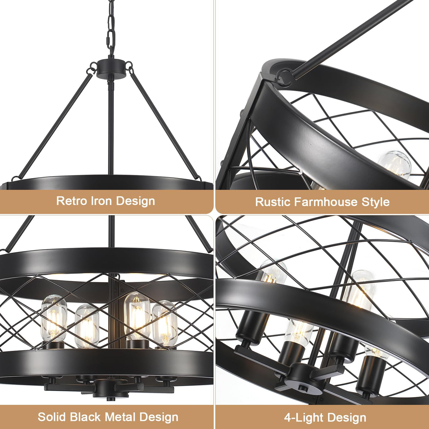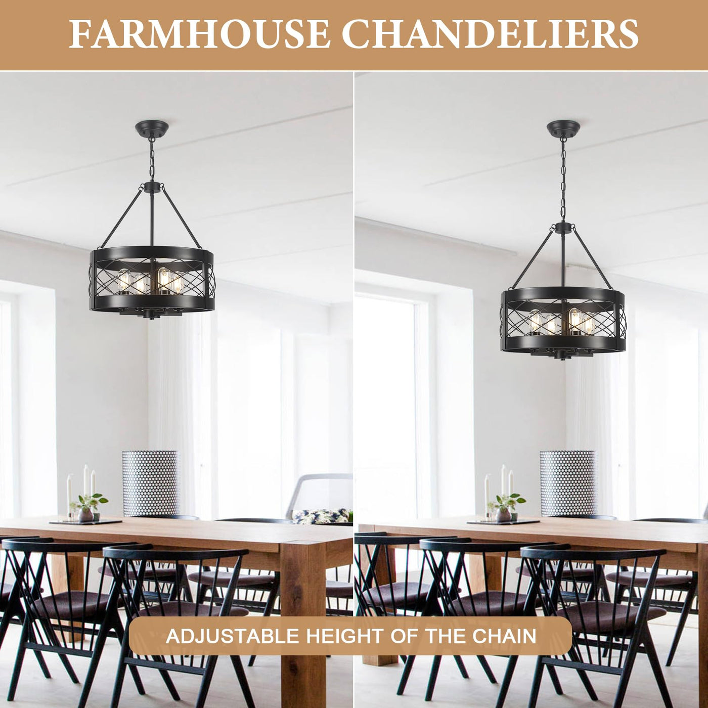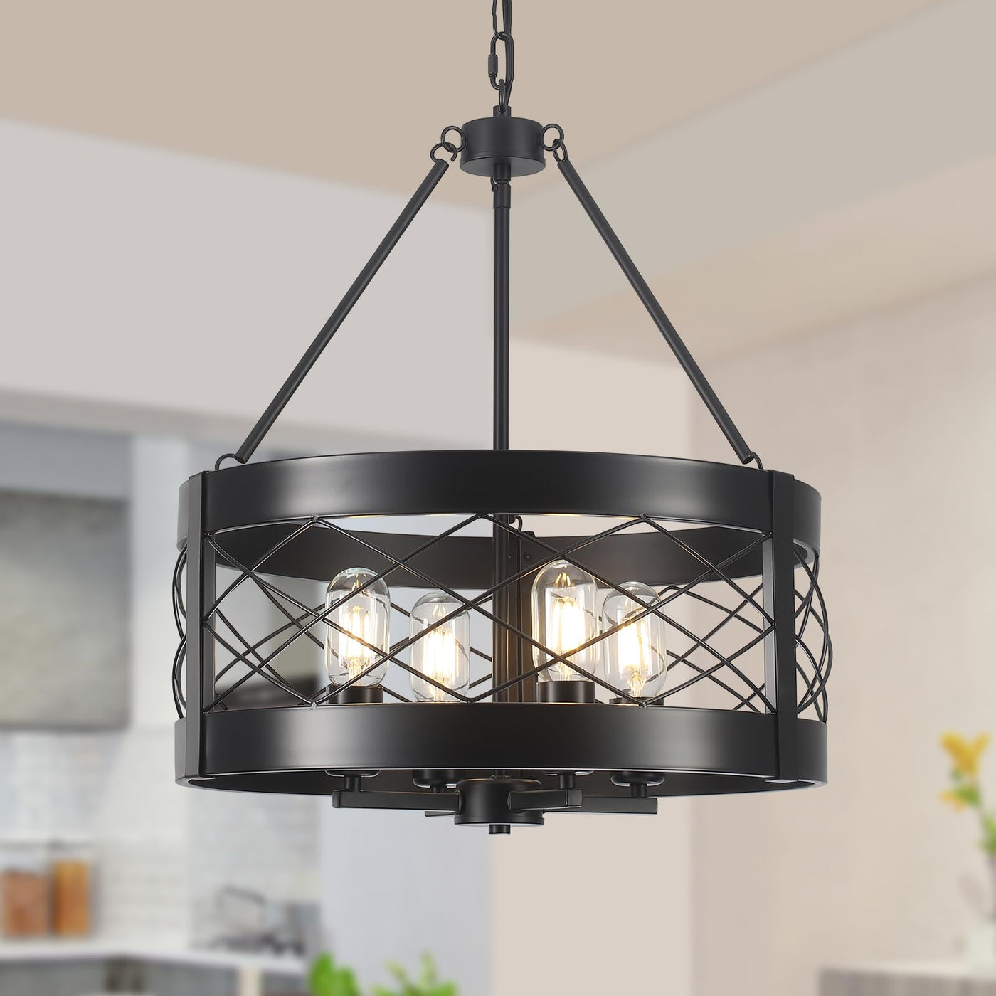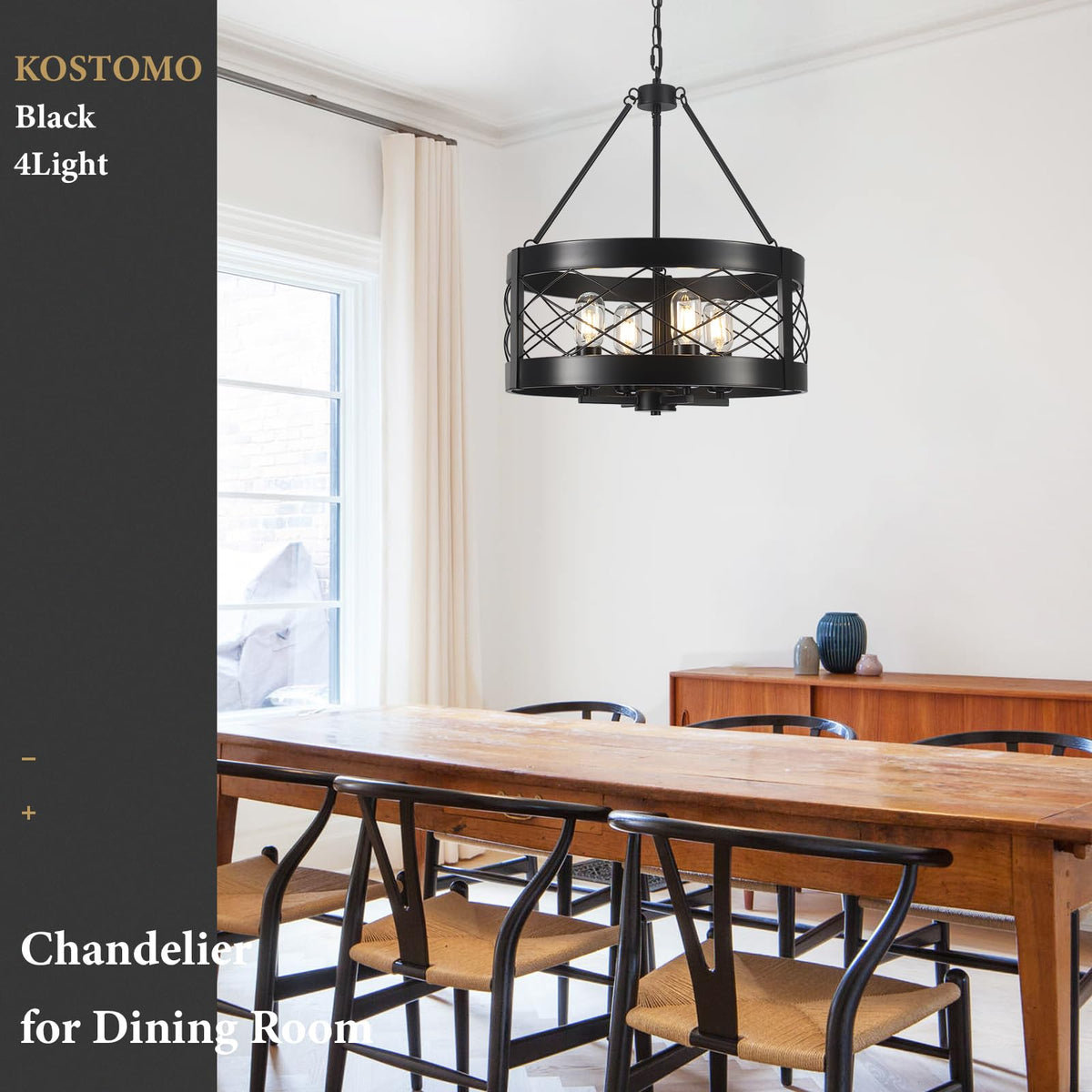 Kostomo Farmhouse Chandelier 4-Light Adjustable Dining Room Light Fixture Kitchen Island Lighting Drum Rustic Hanging Lights For