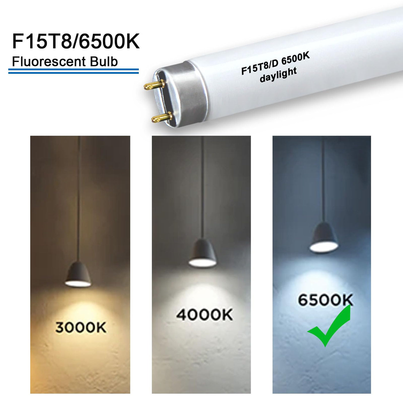 KosunRefill F15T8/D Daylight 18Inch 15 Watt T8 Straight Tube,F15T8/DL T8 Linear Preheat Lighting Lamps,G13 Medium Bi-Pin Base, 6