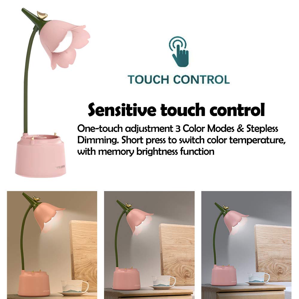 Koudhug Pink Cute Desk Lamp For Kid, Rechargeable Led Lamp With Usb Charging Port, Flexible Gooseneck, 3 Color Modes & Stepless
