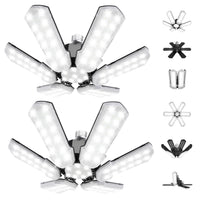 - **What You Get**: This package includes 2 LED Garage Lights and a user manual, providing a super bright lighting tool for various settings like garages, warehouses, and workshops. Enjoy peace of mind with our quality guarantee; contact us via Amazon for any issues.