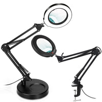 Q: How does the adjustable arm work on the magnifying lamp?A: The magnifying lamp features a flexible swing arm that is adjustable up to 275°. This allows users to customize the angle and position of the magnifier for optimal viewing comfort, making it suitable for various tasks such as sewing, electronics repair, and intricate crafting.