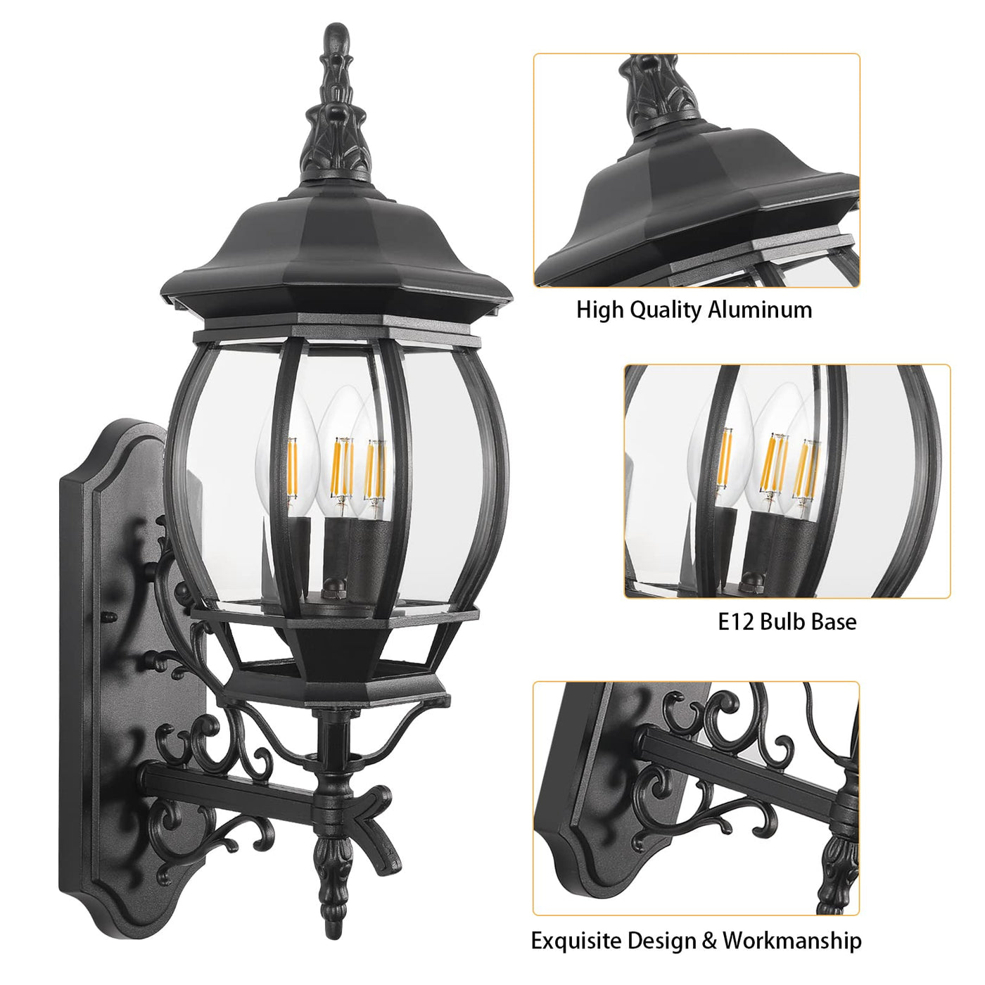 - **Versatile Lighting**: Accommodates three 60W candelabra-base incandescent bulbs (not included), providing ample illumination to brighten your outdoor areas while creating a warm and inviting atmosphere.