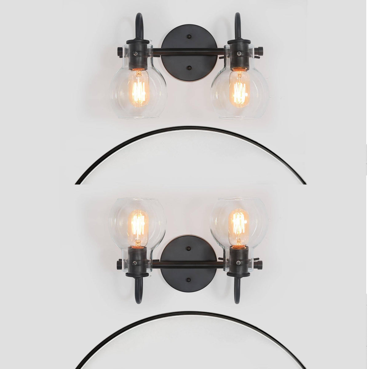 [Modern Bathroom Light Fixtures] Decorated with the gourd clear glass shade and the elegant black finish, the black bathroom light fixtures have an upscale and sumptuous appearance, bringing a modern farmhouse stylish feeling to your space. High transparent glass shades with glazed edges, prevent you from being hurt during installation or cleaning and the open bottom of the vanity light ensures bright illumination. | [Multi-application] The modern style and eye-catching design make the black bathroom vanity light perfect for contemporary, mid-century, industrial, and farmhouse decor. This black bathroom light is ideal for your bathroom to bring a warm vibe, it will also be the focal point in your hallway, dressing room, vanity mirrors, bedroom, etc. | [Perfect Dimension] The whole bathroom vanity light fixtures size: 13? L x 7? W x 9? H, and the glass shade size: 5? D x 6? H and extends from the wall is 7?. The round canopy size is 5? D x 1? H. The black bathroom lighting can be mounted facing upward or downward based on your needs. | [Free Installation & Dimmable] The whole installation process will not take more than 10 minutes! The vanity lighting has been pre-assembled. All you need to do is wiring, then screwing the glass shades and bulbs! The vanity light fixtures need 2 x E26 Base Type A Max 60W Bulbs (Not Included), which are fully dimmable when used with a dimmable bulb and compatible dimmer switch (Not included). | [You Buy, We Guarantee]This modern vanity light is ETL-listed to make it safe to use. We can offer a 2-year warranty and a 30-day return. Please contact us if you have any concerns about this bathroom light.