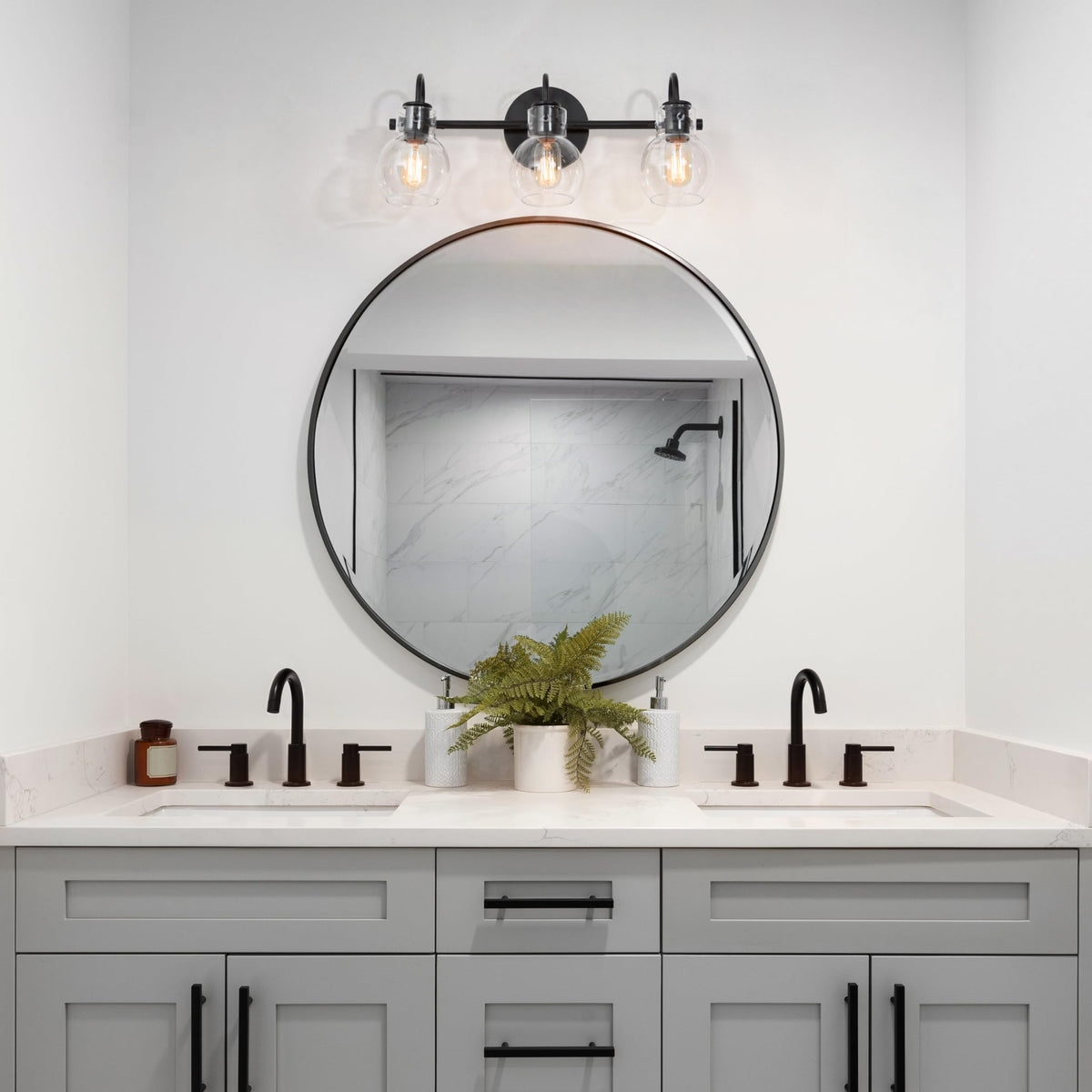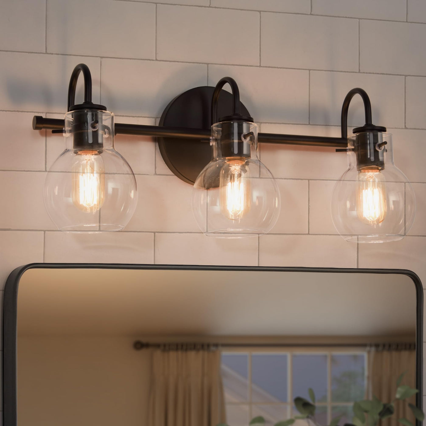 Ksana Black Bathroom Light Fixtures, 3-Light Modern Farmhouse Black Vanity Light With Clear Glass Shade Over Mirror For Hallway,