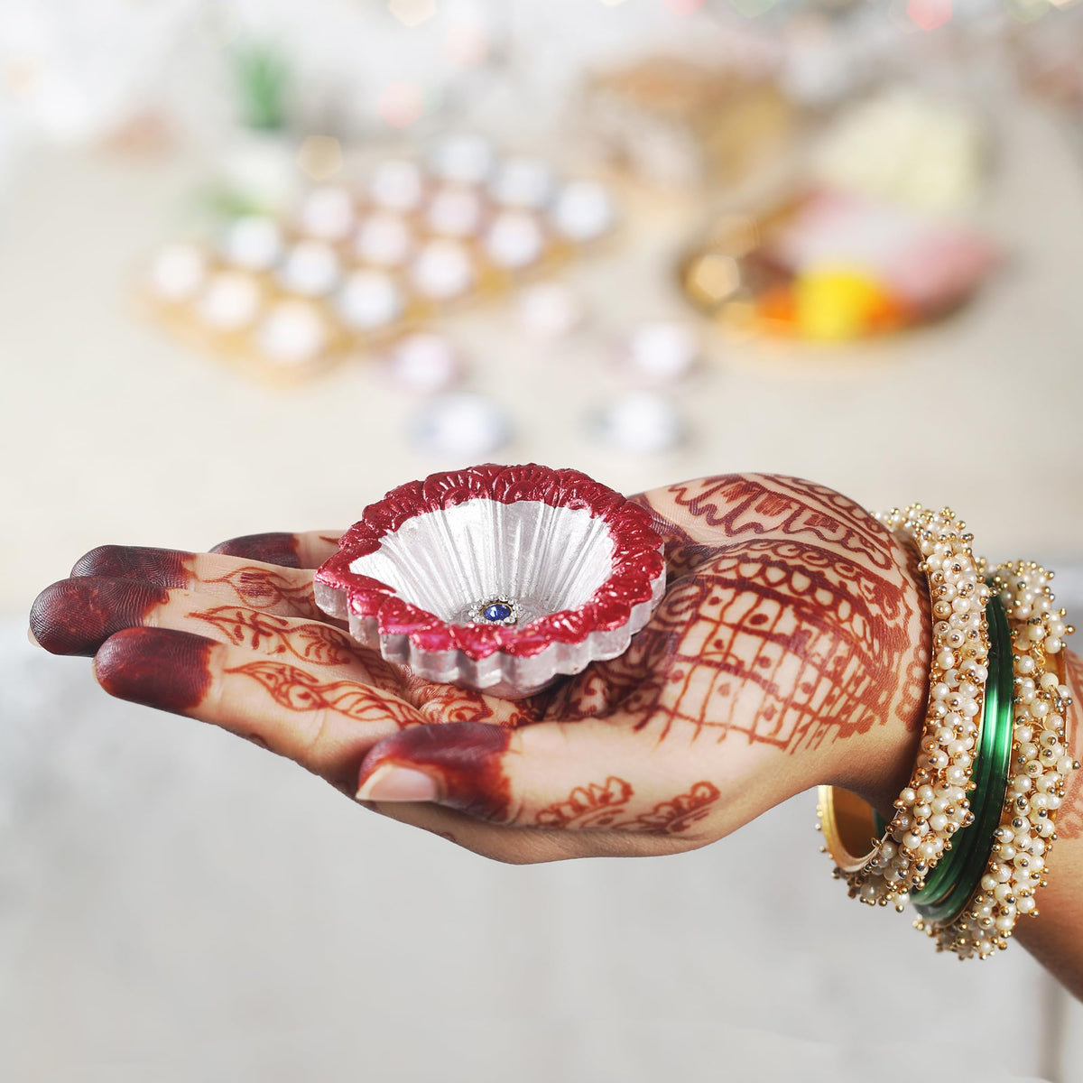 This Terracotta Handpainted Matki Diya for Puja is Unique Style & Handmade by our creative Indian Artists. Bring this decor item to your home & get divine & spiritual feel in your home. The Handmade beautiful Design Diya is a traditional oil lamp. Used since ancient times as a decoration and a source of light, the diya is an oil lamp that burns vegetable oil or ghee Indian butter. Once the lamp is filled, you place a cotton wick inside and light it to fill the room with light. The lamps are used as a part of Festivals, You can also use them as decorations in your home in the living room or bedroom or place them on a dining table instead of candles