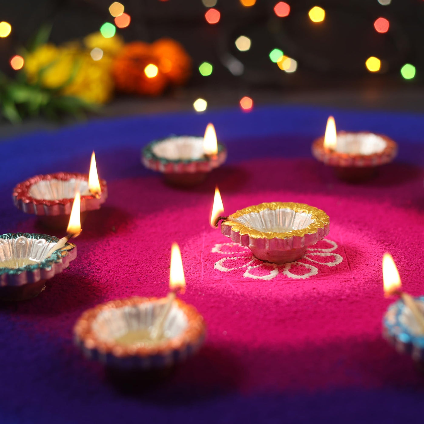 KSJONE 30 Pcs Hand Painted Diwali Decoration Diwali Clay Diya with Cotton Wicks Oil Lamp Indian Festive Home Decoration Traditio