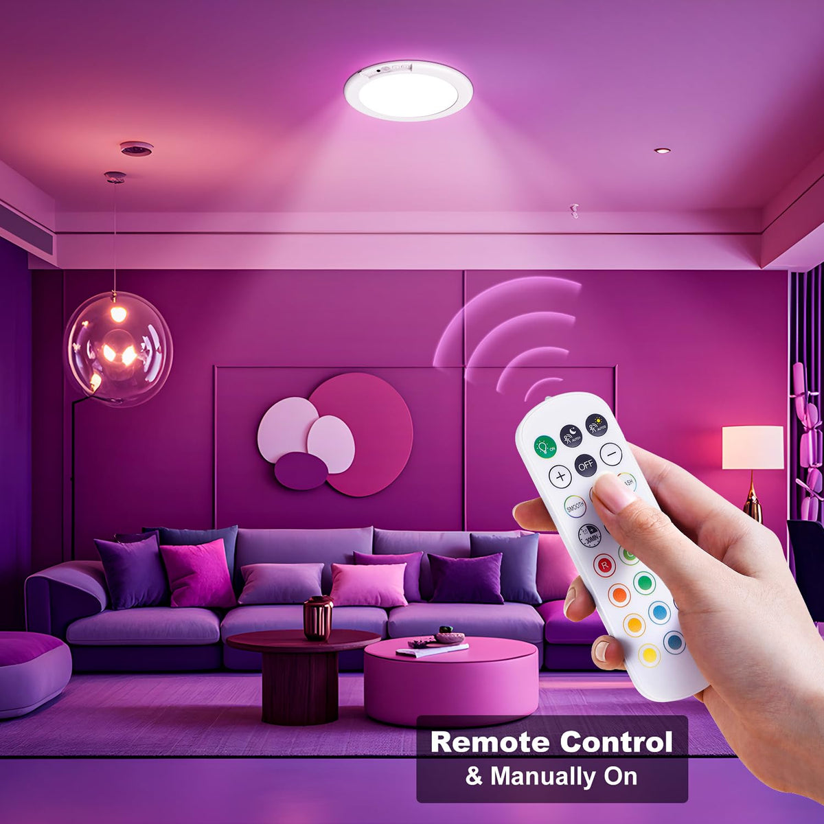 Ktpugorn Rechargeable Ceiling Light With Remote, Shower Lights For Inside Shower With Color Changing & White Lights, Motion Sens