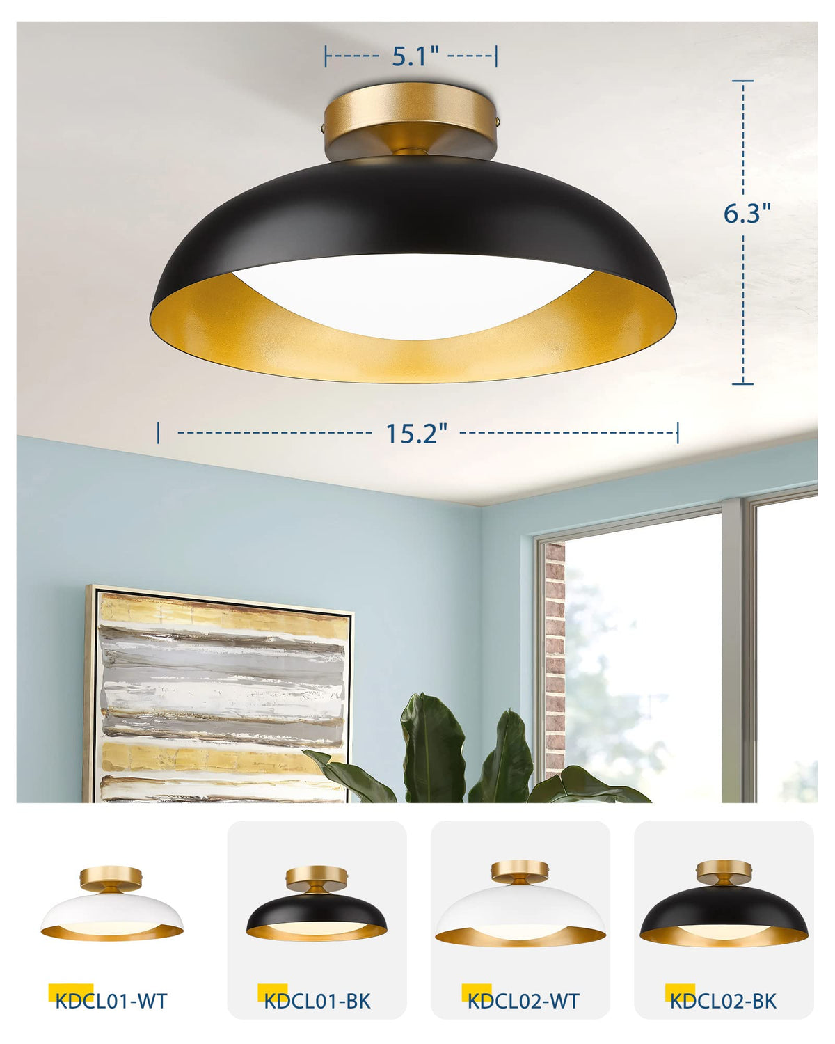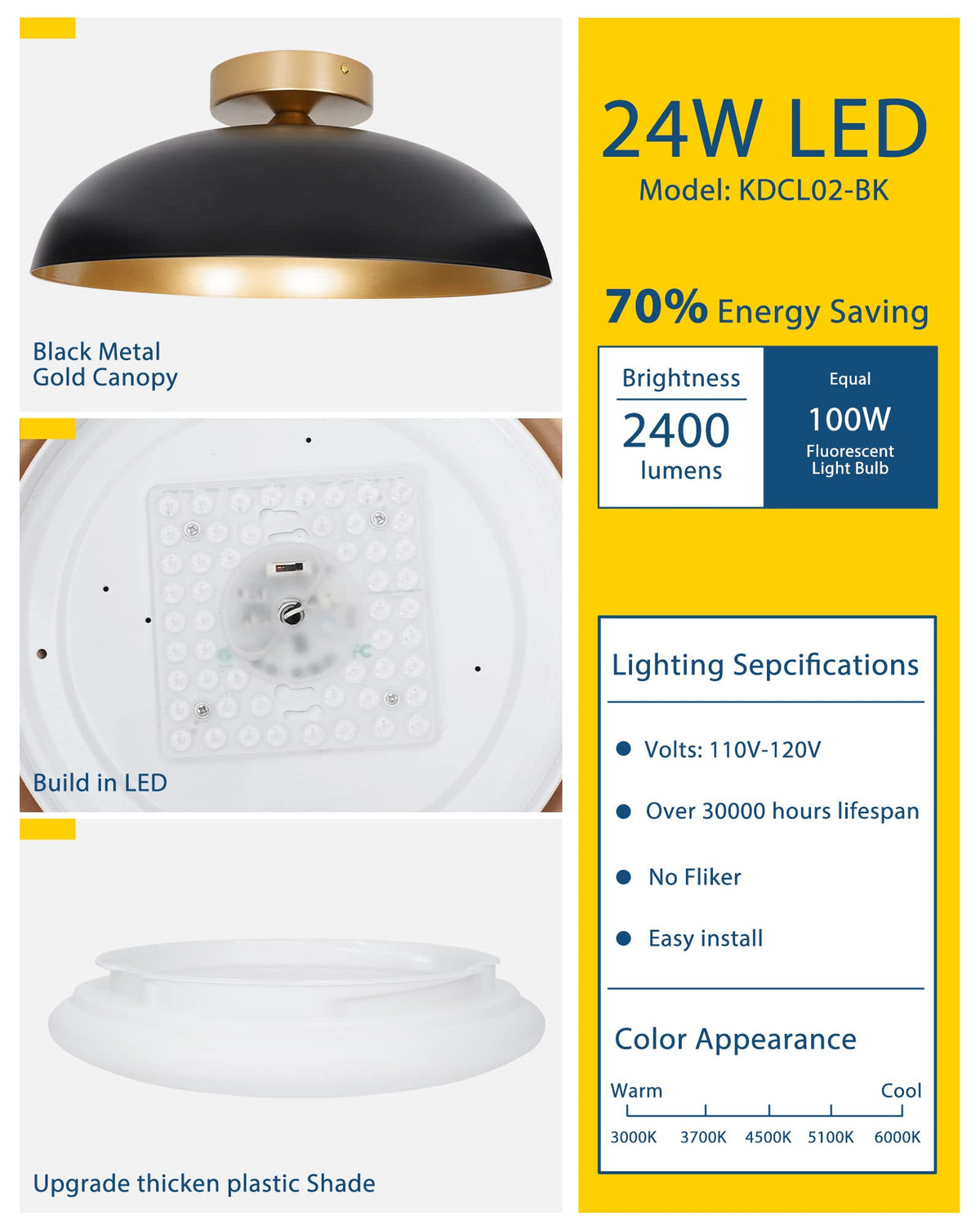 Kudos 16 Inch Flush Mount Ceiling Light, 2 Pack Led Ceiling Light Fixtures, 24W 2400Lm Black And Gold Ceiling Lights For Kitchen, Hallway, Bathroom, 5Cct Adjustable, Kdcl02-Bk-2Pk