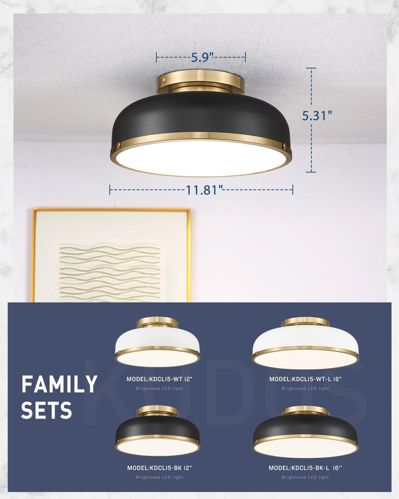 Q: What is the installation process for the Kudos Ceiling Light?A: The Kudos Ceiling Light comes with all necessary mounting hardware and installation instructions, making it easy for you to install. It measures 11.81 inches in length and width and has a height of 5.31 inches.