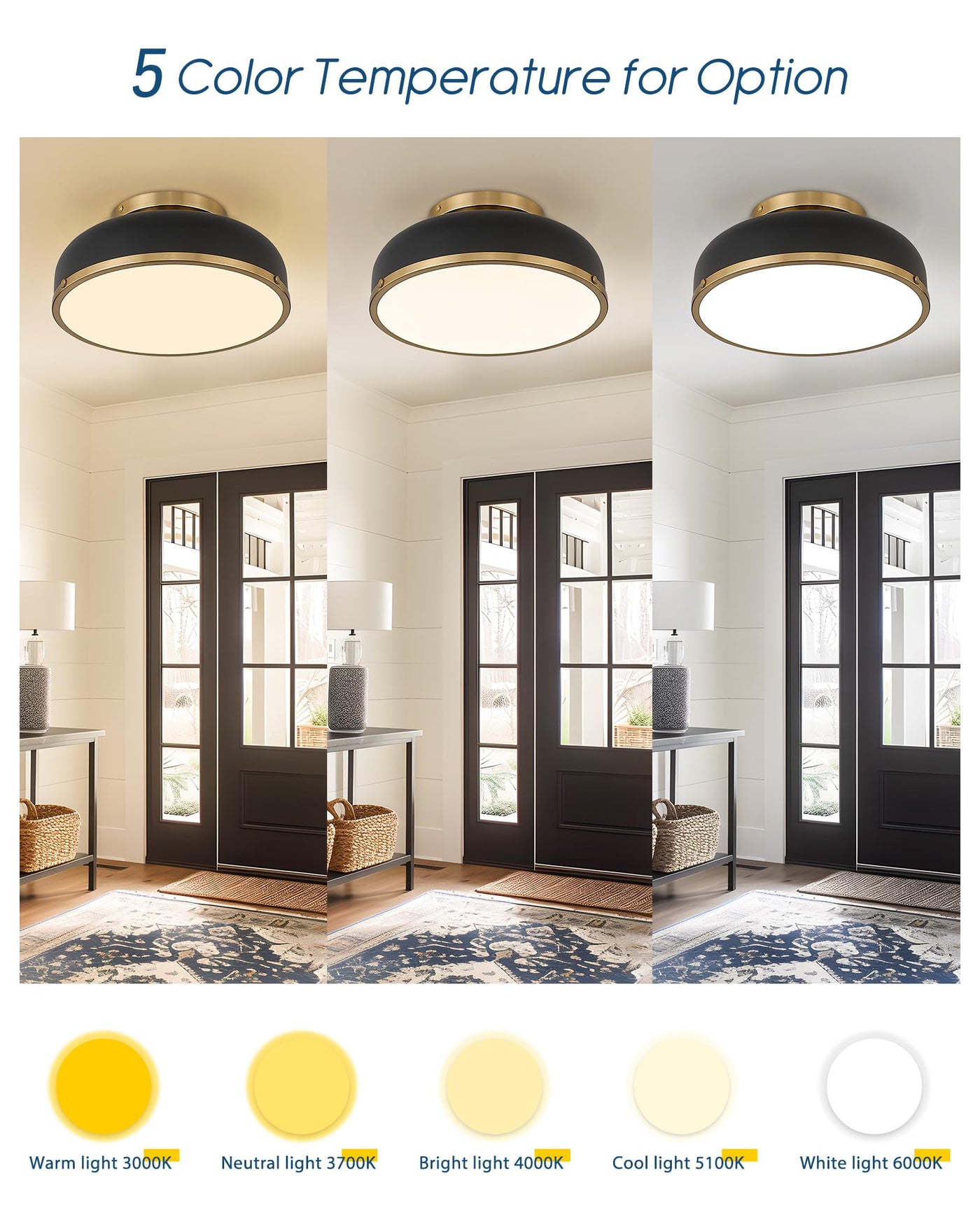 Kudos Ceiling Light, 12-Inch Led Flush Mount Ceiling Light, Black And Gold Finish, 24W/1100Lm Light Fixtures Ceiling Mount For Living Room, Bedroom, 3000K/3700K/4500K/5100K/6000K Adjustbale, Kdcl15-Bk