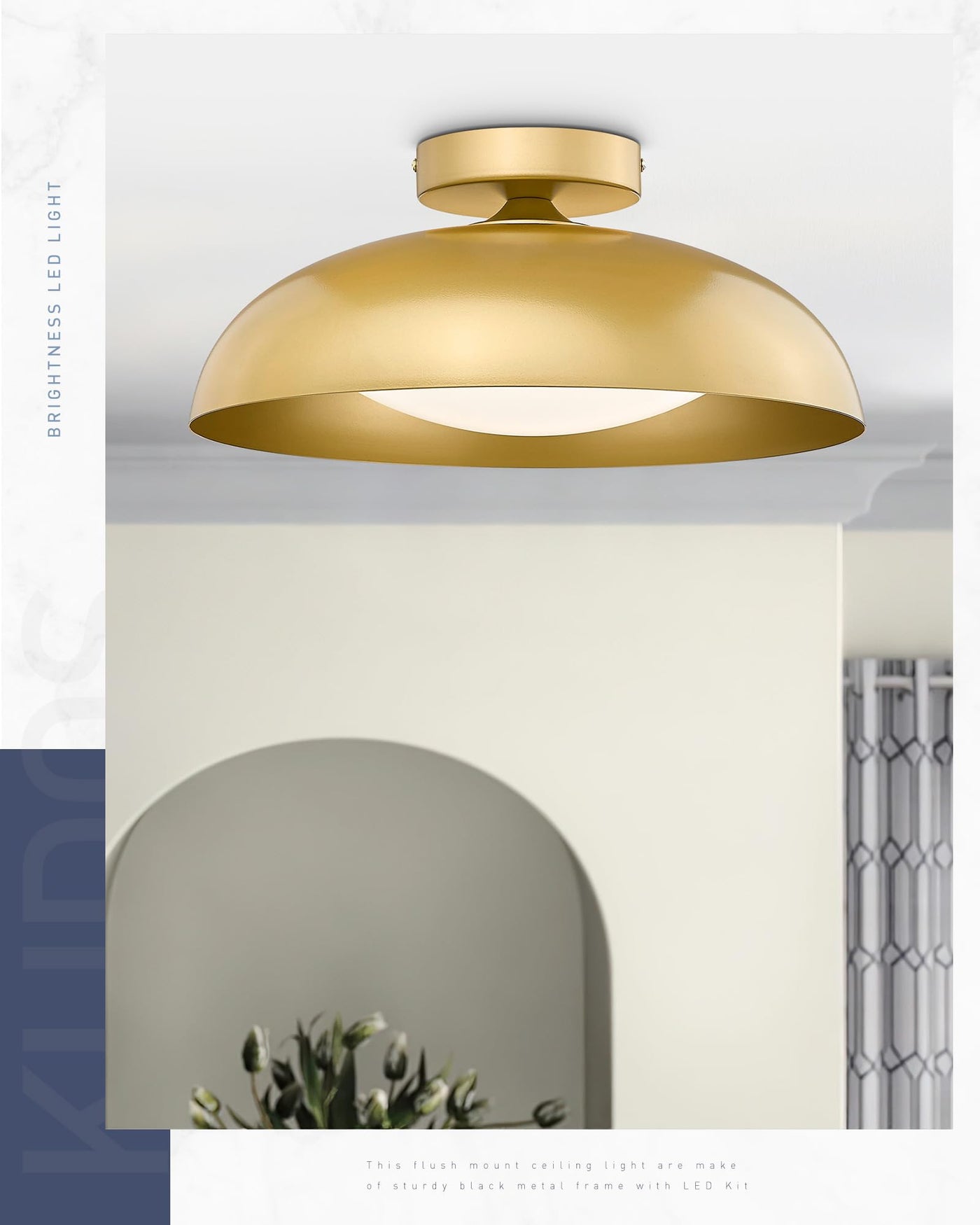 Q: Is this ceiling light suitable for outdoor use?A: The Kudos Gold Flush Mount Ceiling Light is designed for indoor use and is ideal for various spaces such as bedrooms, living rooms, kitchens, and hallways. It is not recommended for outdoor installations.