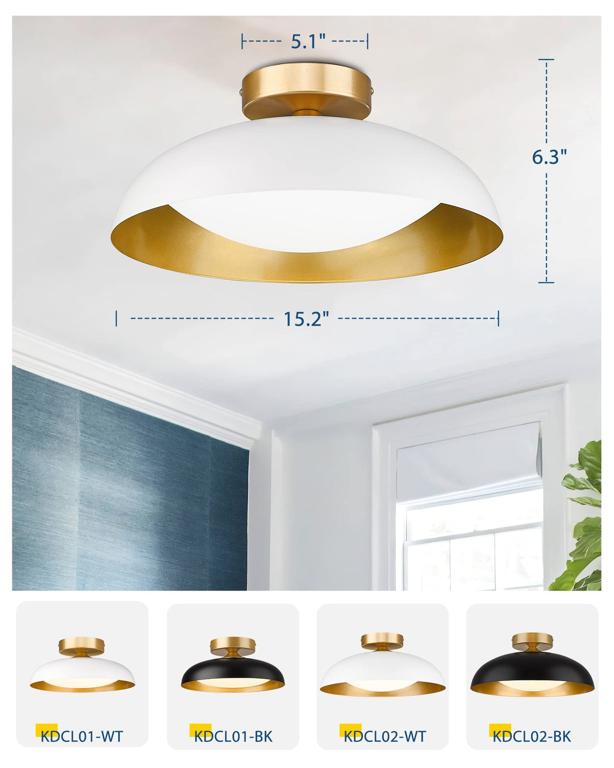 modern led light fixtures ceiling mount, white and gold semi flush mount ceiling light fixture, 15 inch 16 inch ceiling light fixtures for bathroom, hallway, kitchen, bedroom, flushmount ceiling light set of 2, 2 pack flush mount light