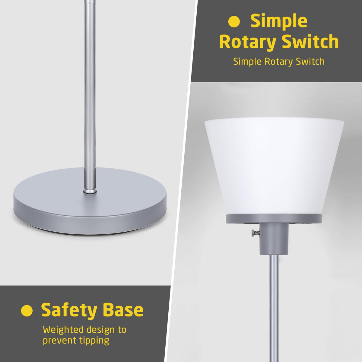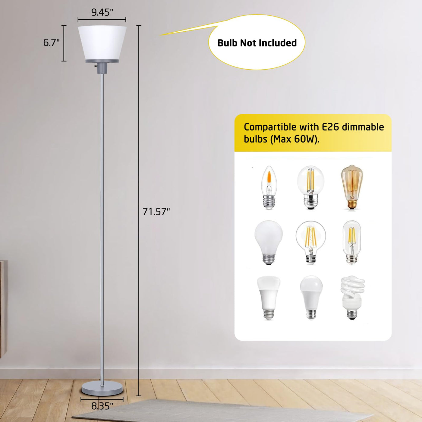Kukobo Standing Lamp For Bedroom, Led Modern Floor Lamp For Living Room Office, Sliver Tall Bright Floor Lamp With White Plastic