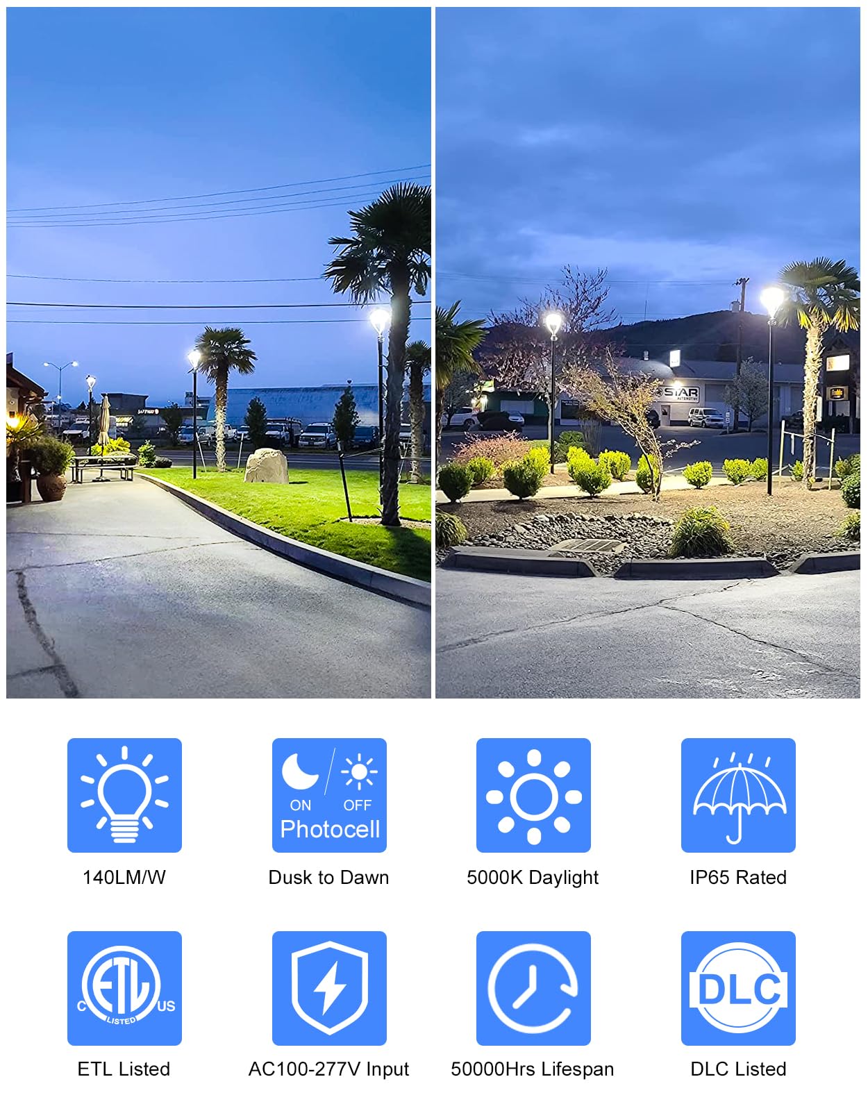 Kukuppo 10Pack 100W/80W/60W Led Post Top Light - 14000Lm, Dusk To Dawn, Ip65 Waterproof, Ac100-277
