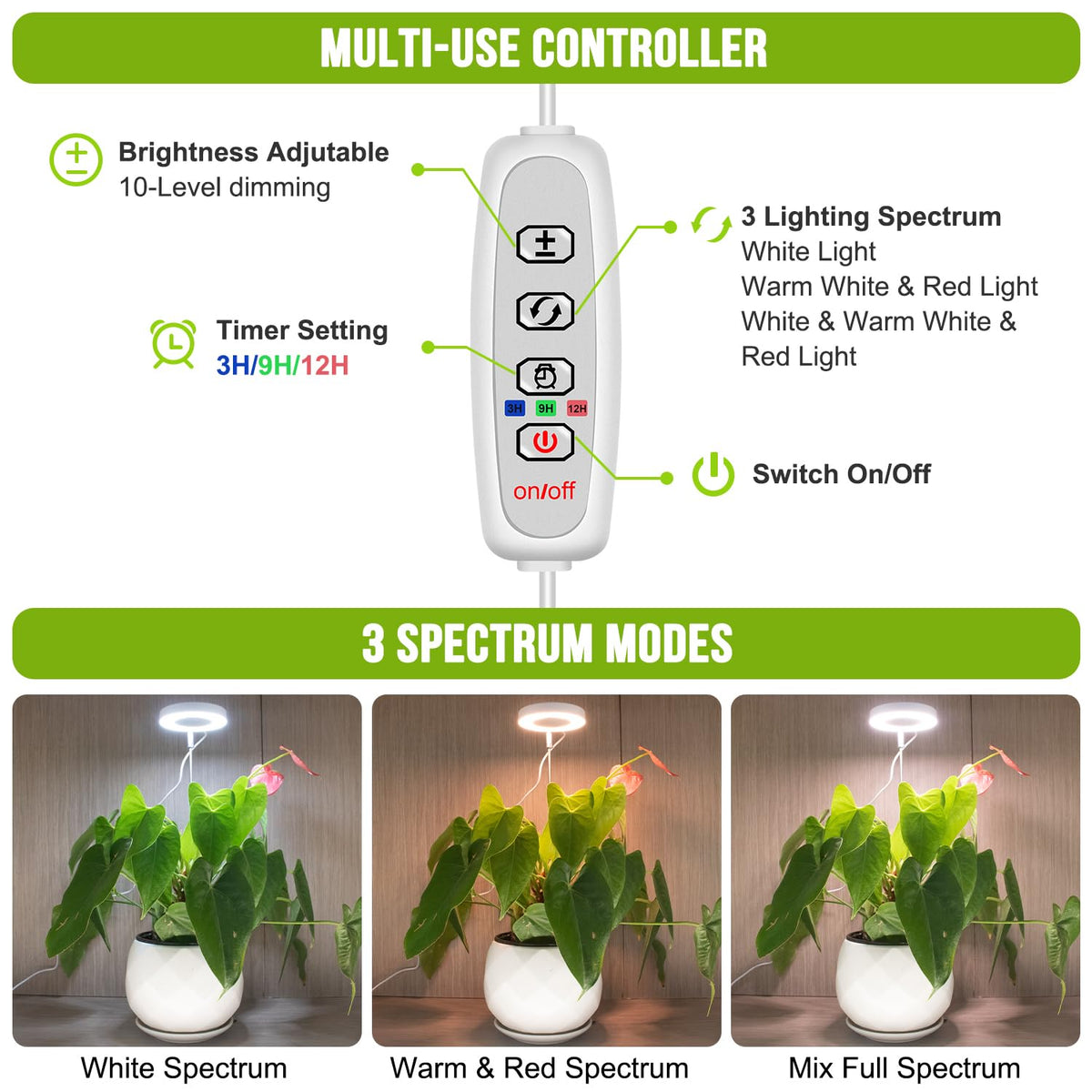 Kullsinss Grow Lights For Indoor Plants, 48 Leds Full Spectrum Halo Plant Light For Indoor Plants, Height Adjustable Growing Lamp With Detachable Base, 3 9 12Hrs Timer, 10 Brightness, 3 Pack