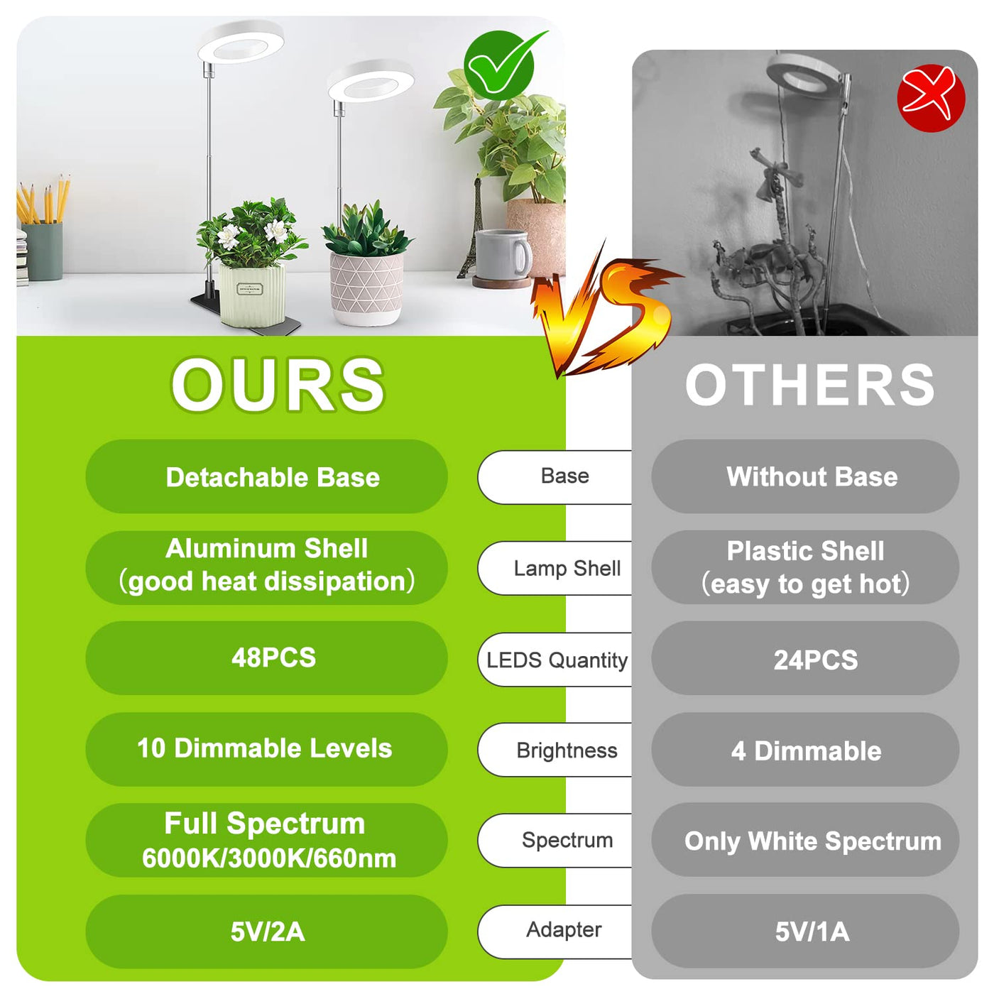 Kullsinss Grow Light, 48 LEDs Full Spectrum Plant Light for Indoor Plants, Height Adjustable Halo Grow lamp with Base, 3 Spectrums Modes, 10 Dimmable Levels, Auto On/Off Timer, Ideal for Small Plant
