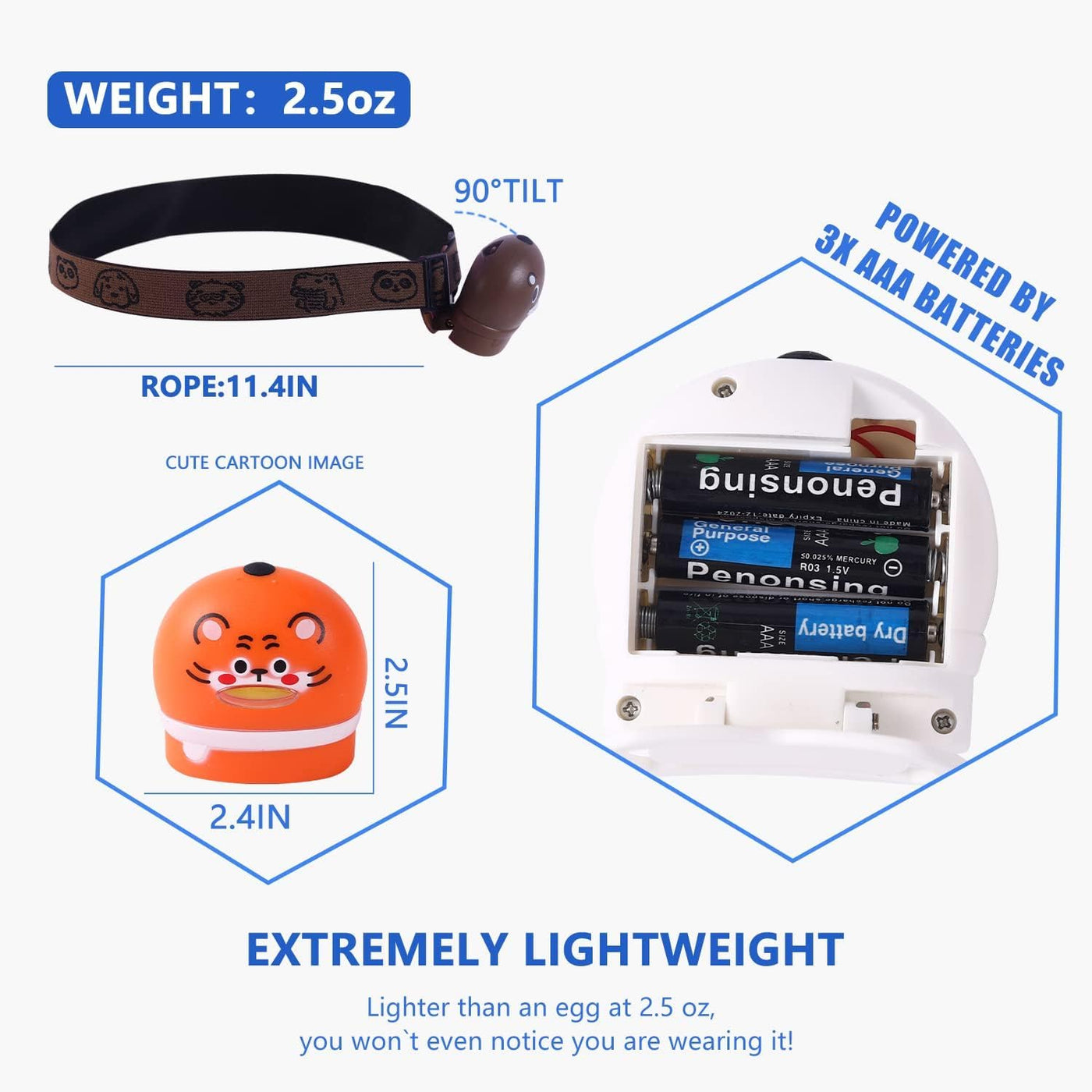 - **Convenient Power Source**: The headlamp is powered by 3 AAA batteries, which are included for immediate use, allowing kids to start their adventures right away.