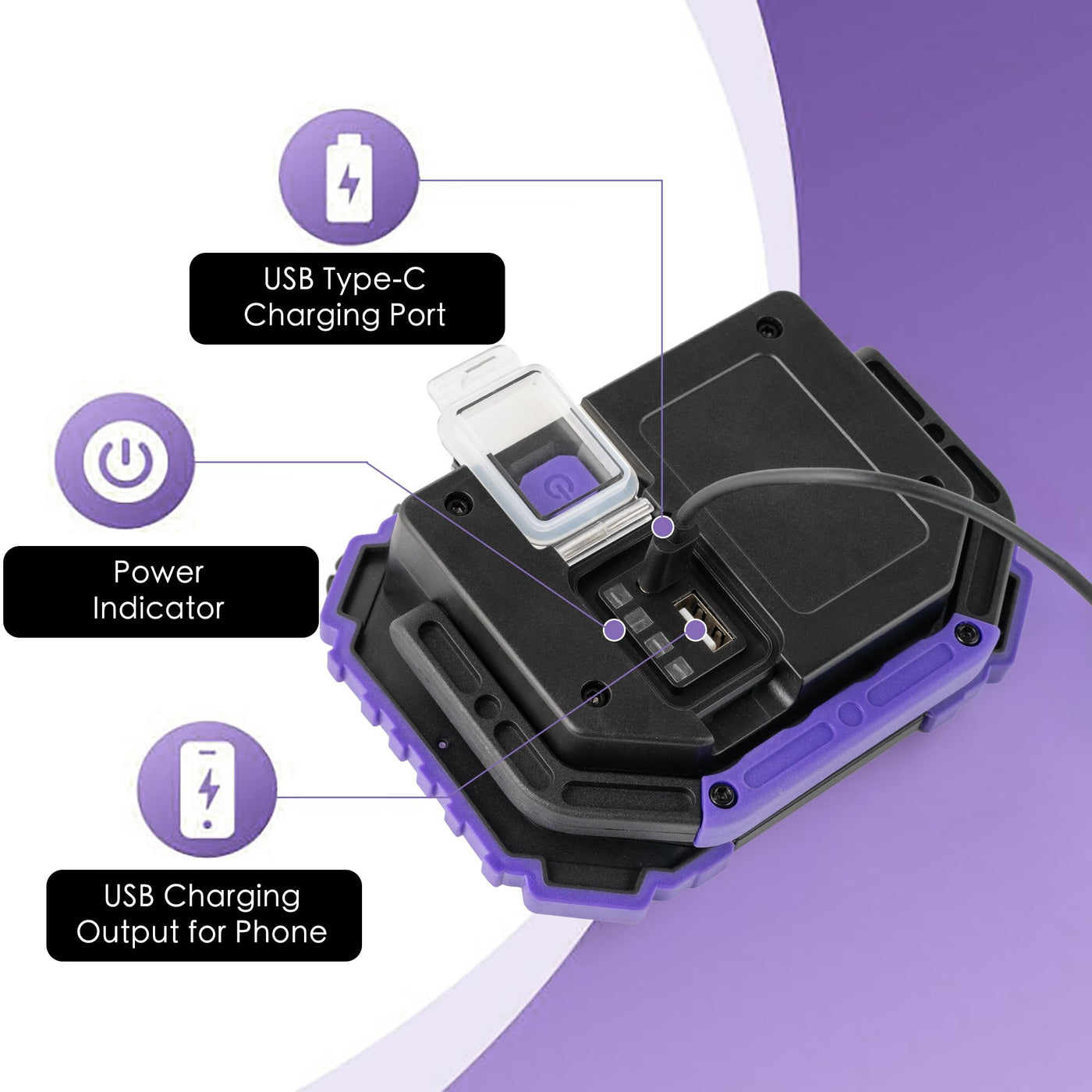 Illuminate your events and activities with our rechargeable black light floodlight. Perfect for glow parties, night fishing, Halloween decorations, and classroom demonstrations, this versatile light features a 395nm wavelength for vivid illumination. With a 1500mAh battery, enjoy up to 4 hours of high brightness or 12 hours of low brightness. The 180-degree adjustable handle/stand and simple switch cycle make it easy to use and position in any scenario. Built to withstand tough conditions, its waterproof and drop-resistant, ensuring reliable performance wherever you need it.
