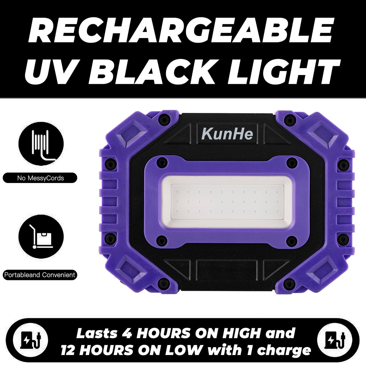Kunhe Rechargeable Black Light,Portable Battery Powered Blacklight Lamp,Cordless 395Nm Floodlight For Night Fishing,Dark Glow Pa